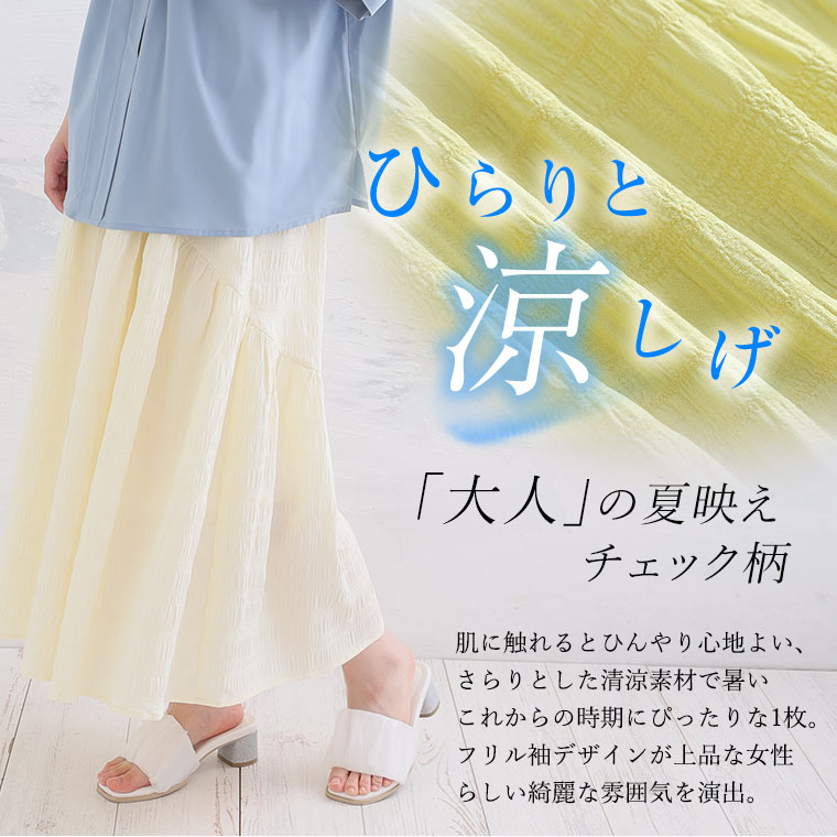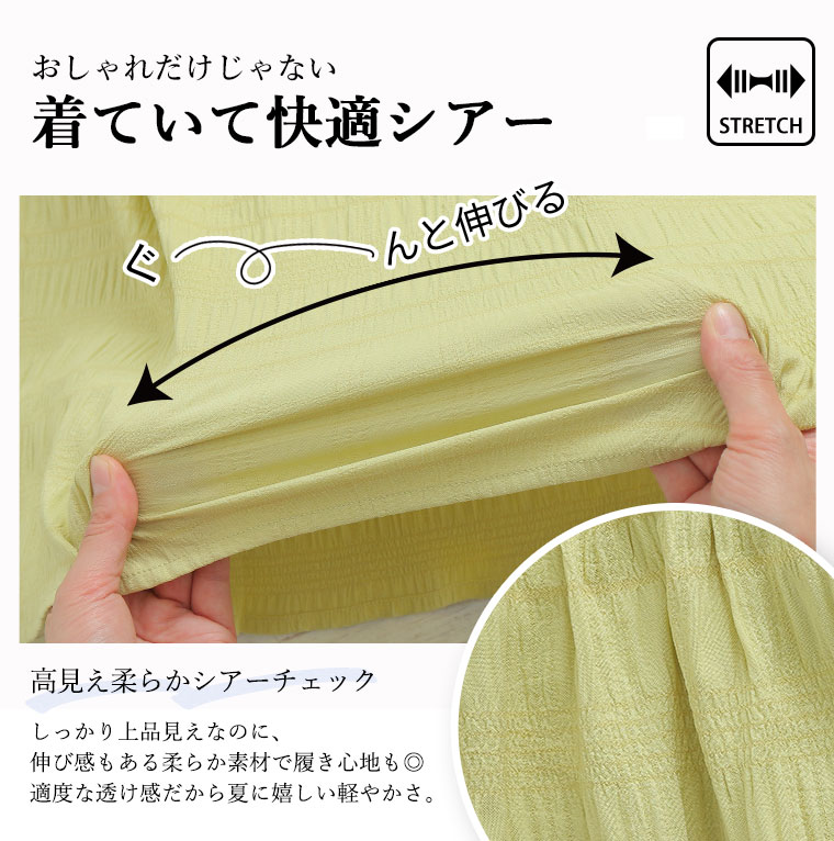動くたびにひらっと揺れる薄手シアーチェック素材