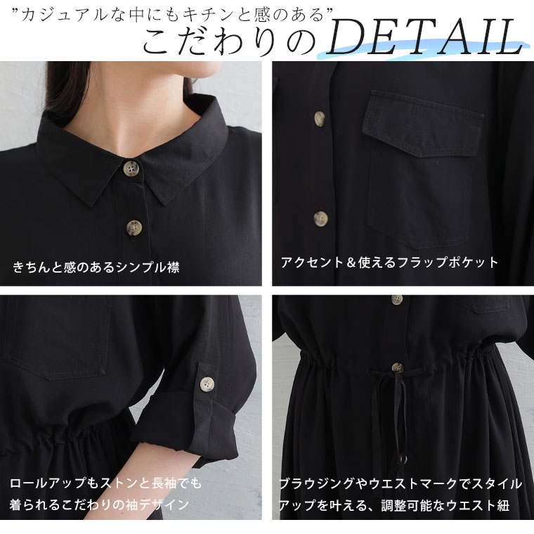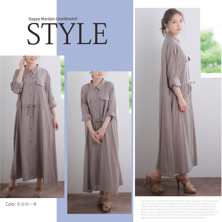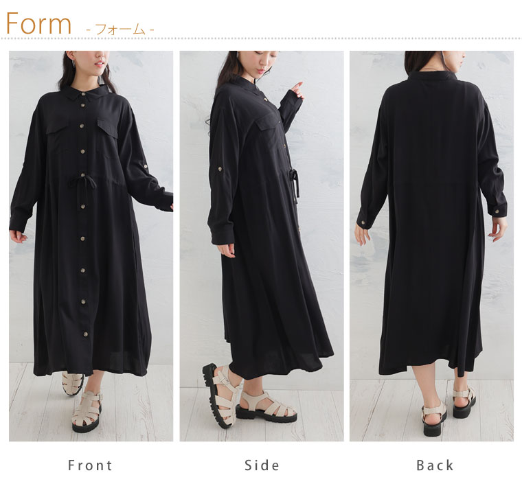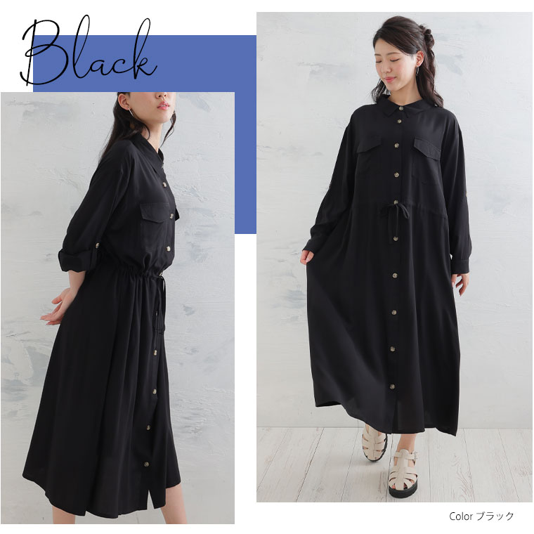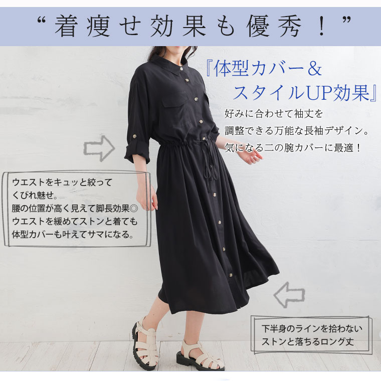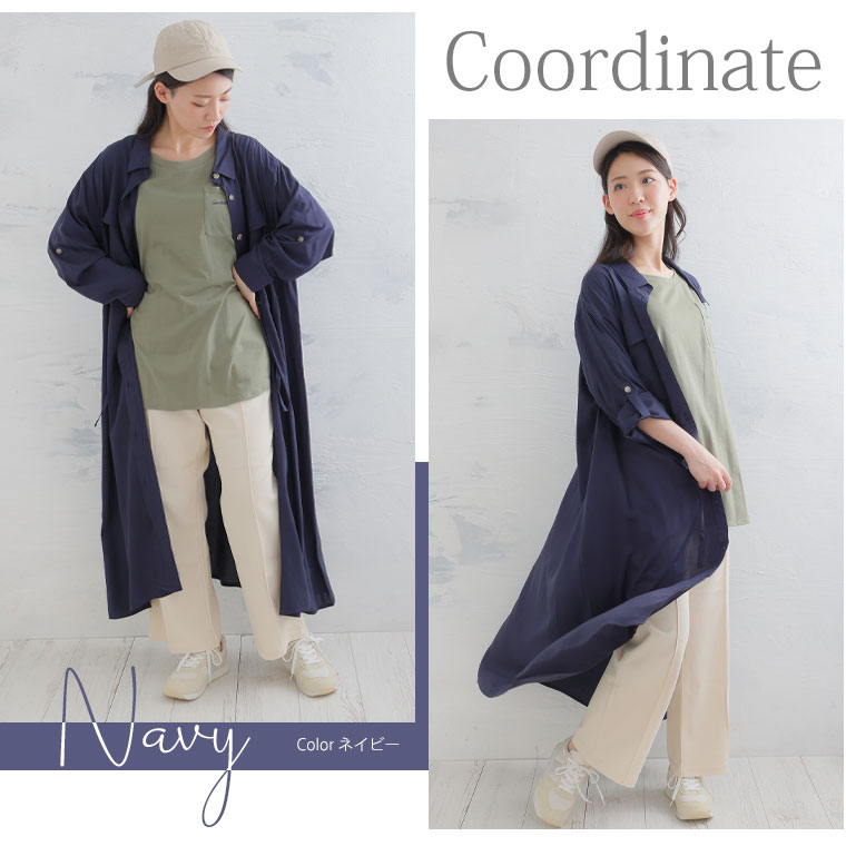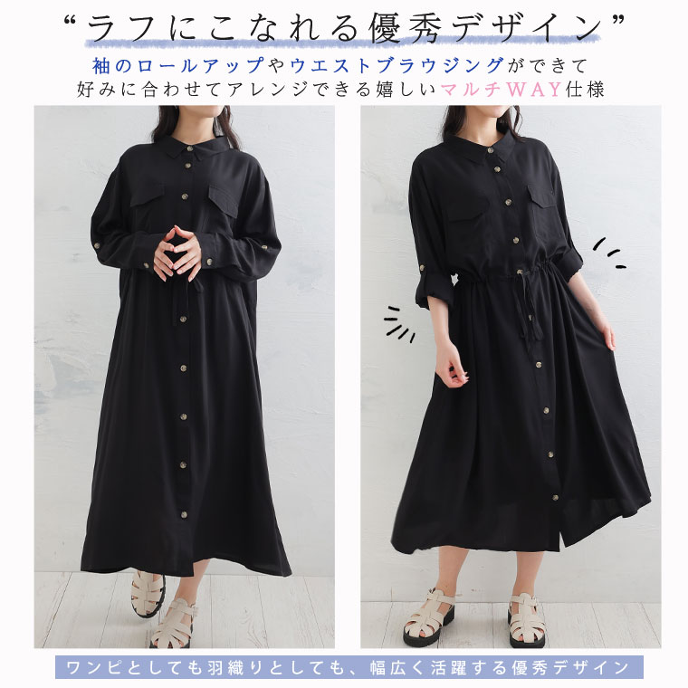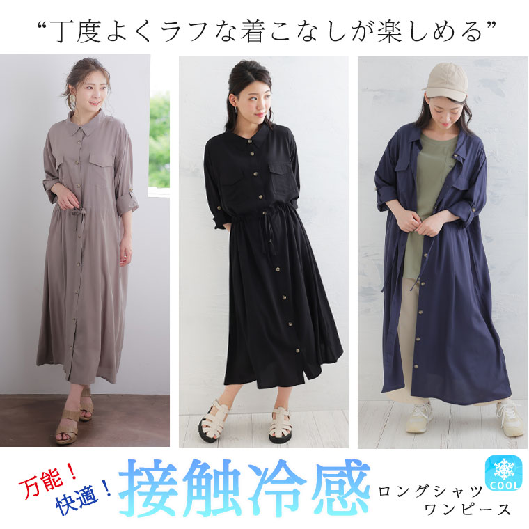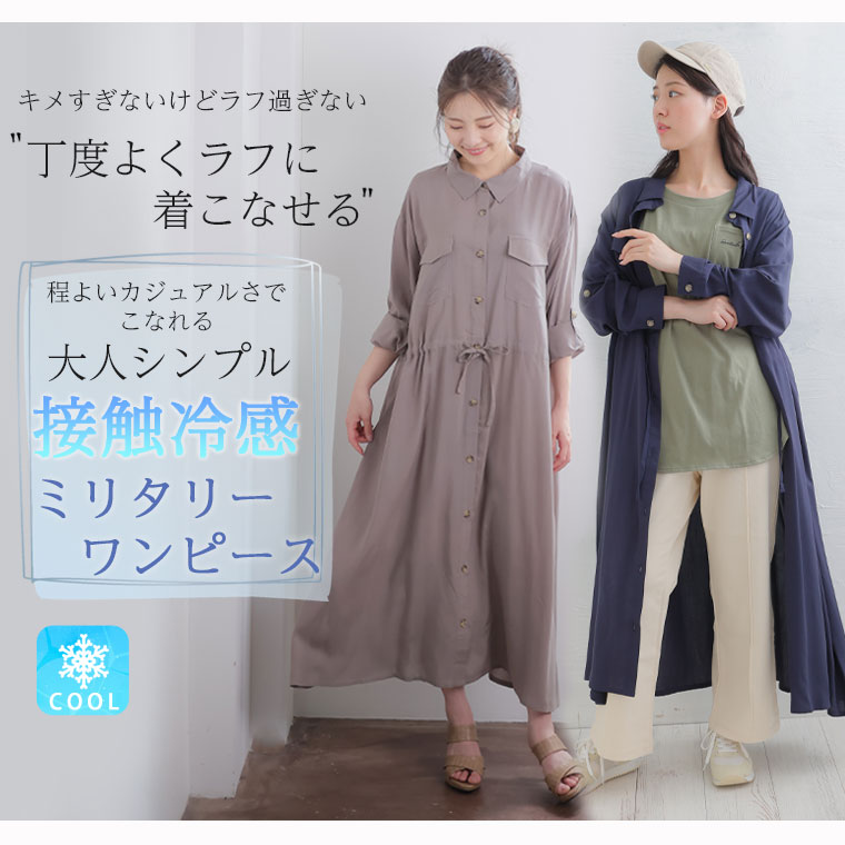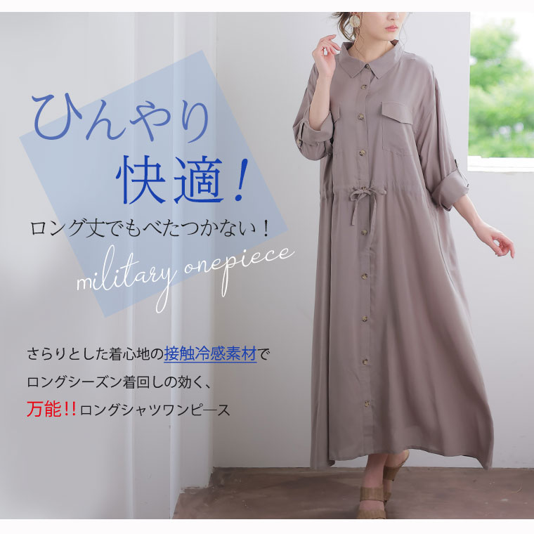 ひんやりさらり、快適な着心地 ミリタリーロングシャツワンピース
