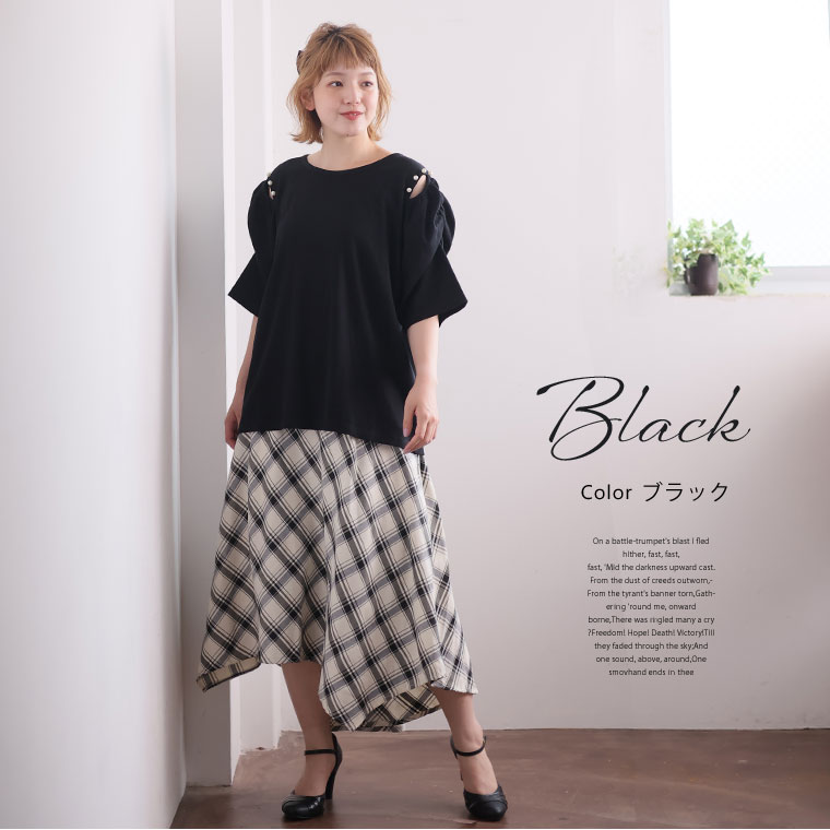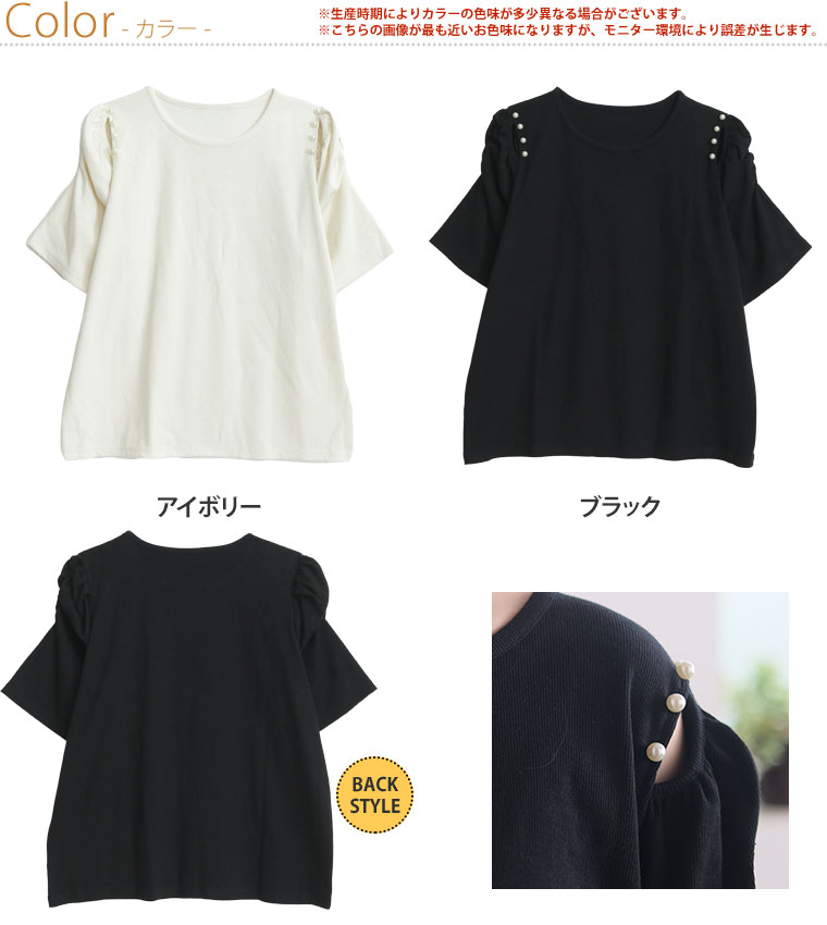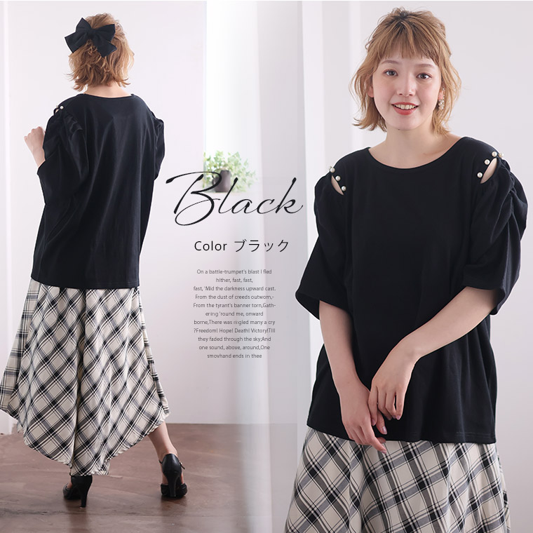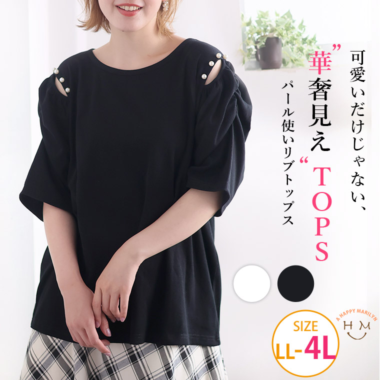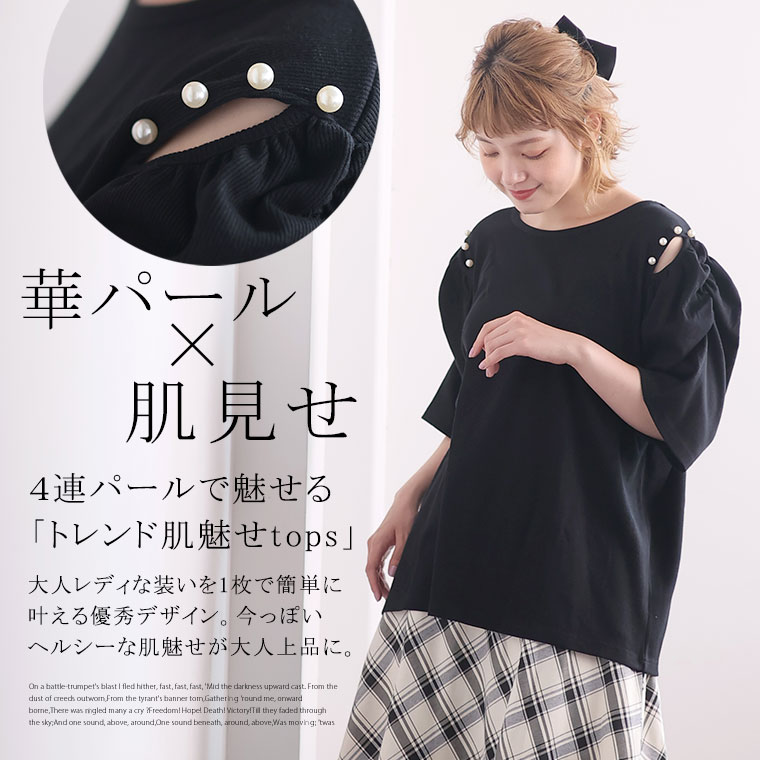4. 大きいサイズ パワショル パール付 トップス