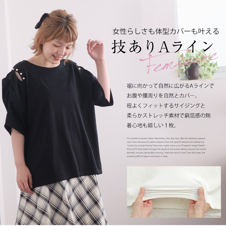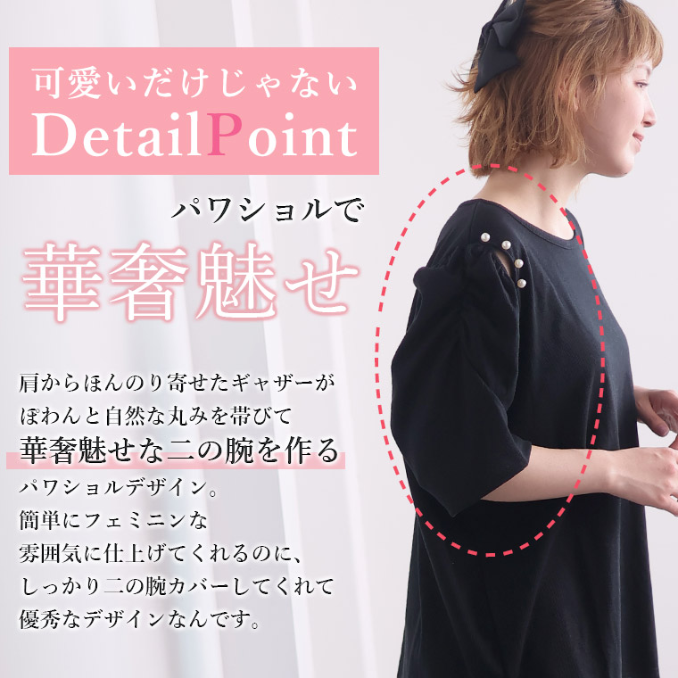 3. 大きいサイズ パワショル パール付 トップス