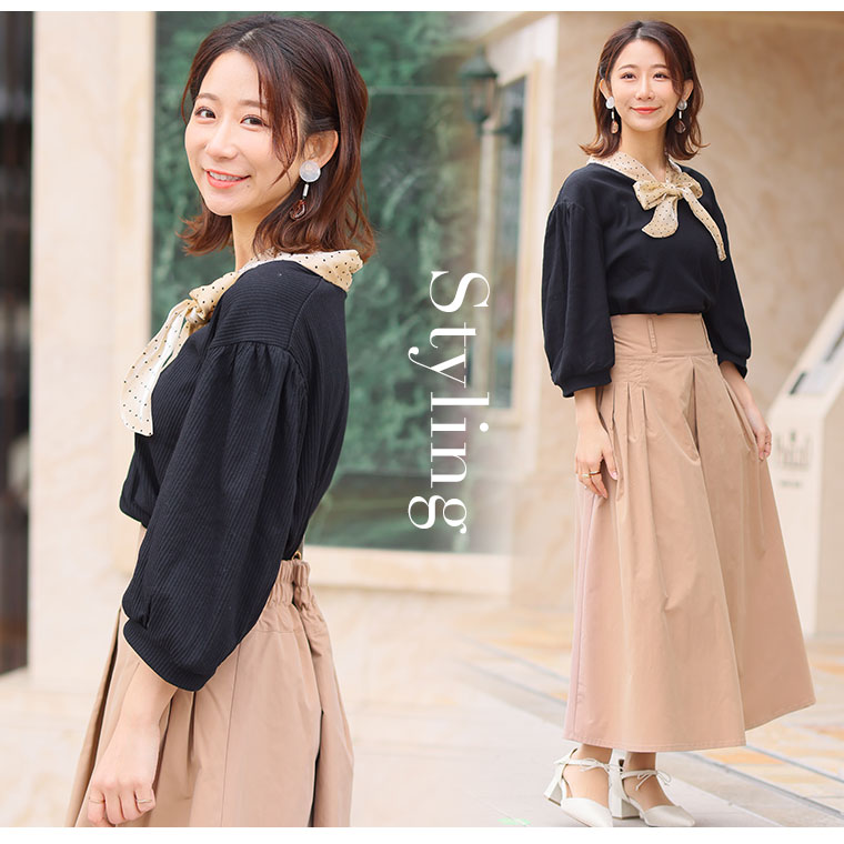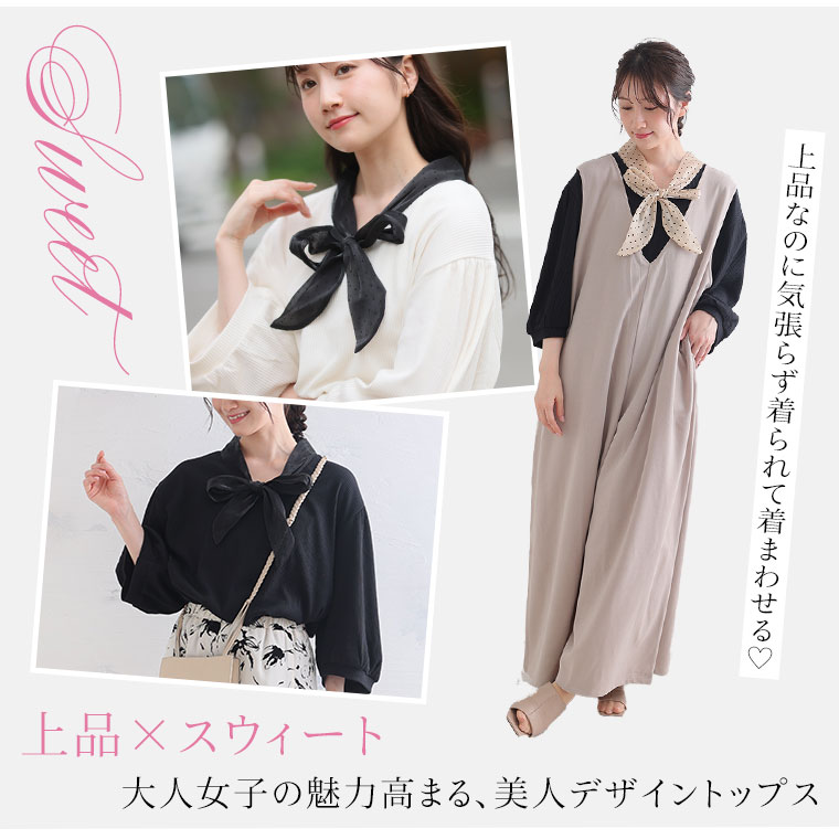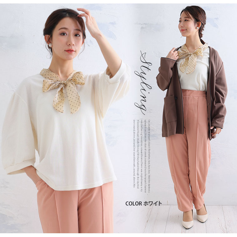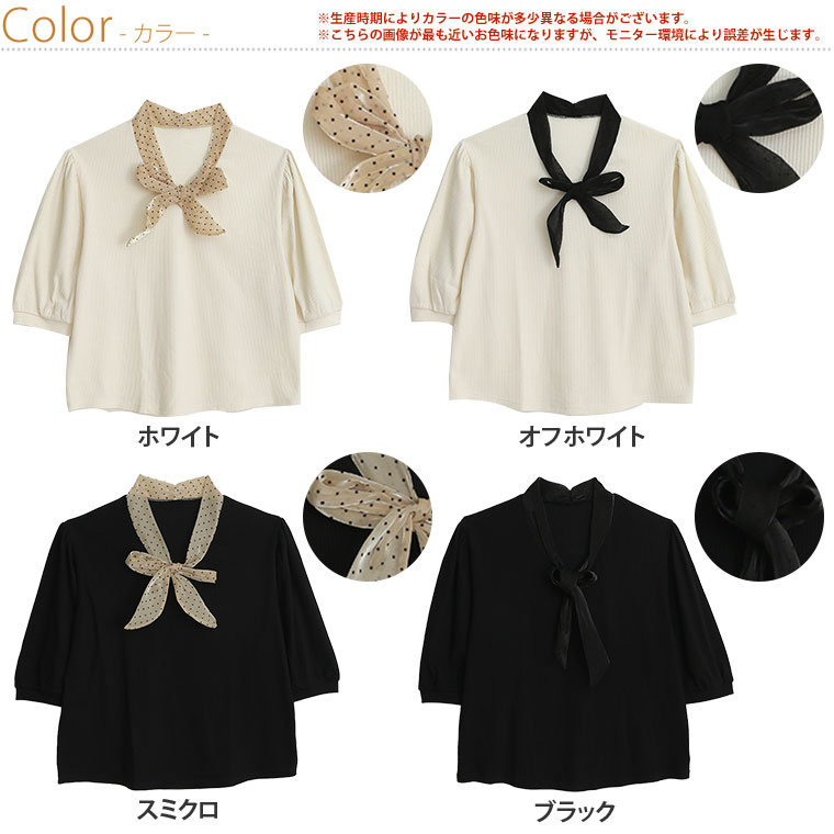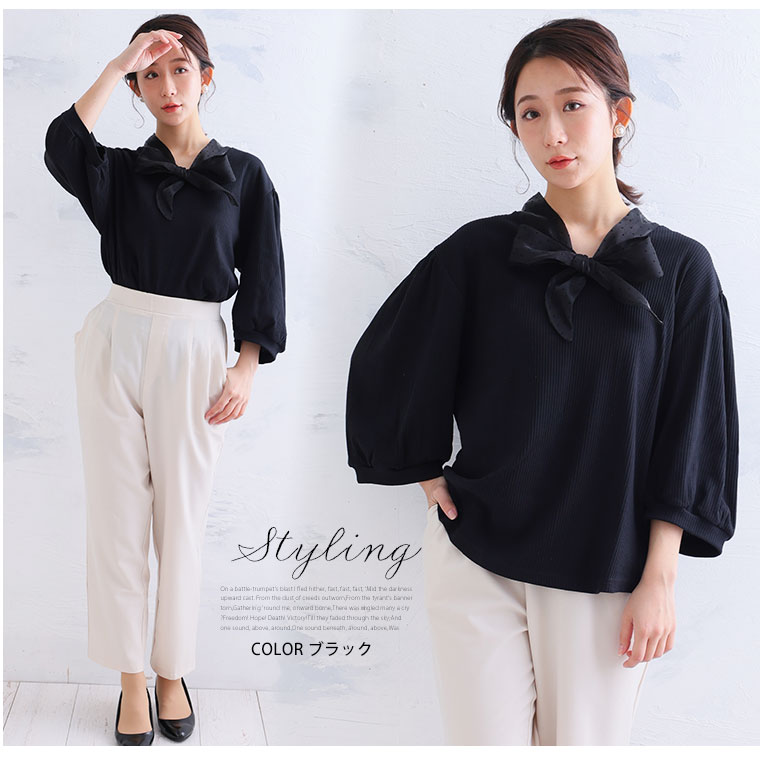 カットソー LL 3L 4L 5L 6L 秋 秋物 秋冬 ぽっちゃり ゆったり リボンタイ ドット テレコリブ フェミニン ガーリー かわいい おしゃれ カジュアル ナチュラル プラスサイズ ドット柄 リボン使い テレコ プルオーバー