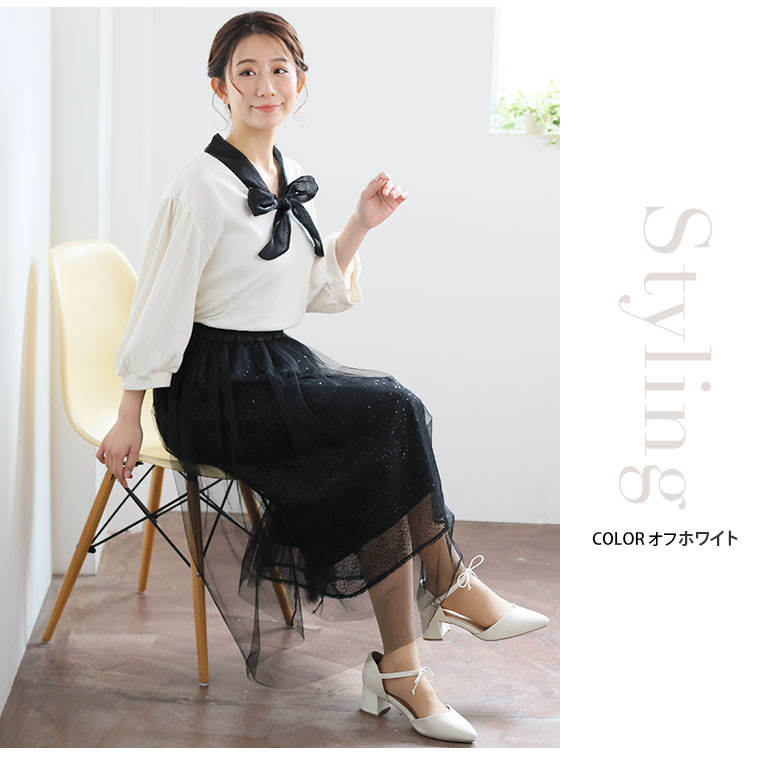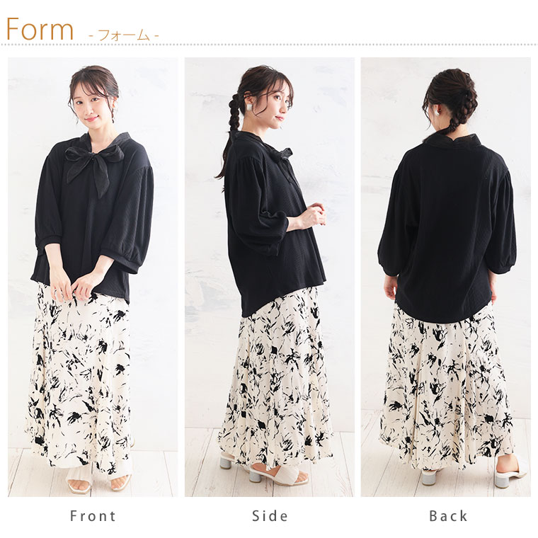 3. 大きいサイズ ドット柄 リボン使い テレコ プルオーバー