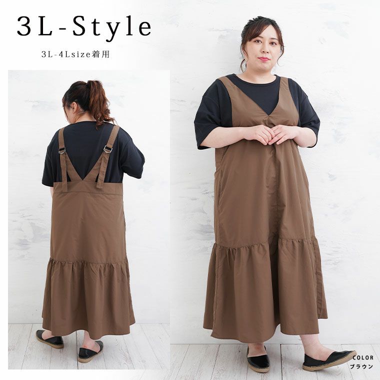 他の画像を見る ジャンパースカート LL 3L 4L 5L 6L 夏 夏物 夏服 夏用 ぽっちゃり ゆったり ナチュラル プラスサイズ 【LUMFORLE produced by My:nia】ベルテッドデザイン ティアード フレア ナイロン ジャンスカ | 大きいサイズの通販ならハッピーマリリン SALE 定価 ¥ 7,990 のところ 価格 ¥ 3,990 税込 2.50 お気に入りに登録する