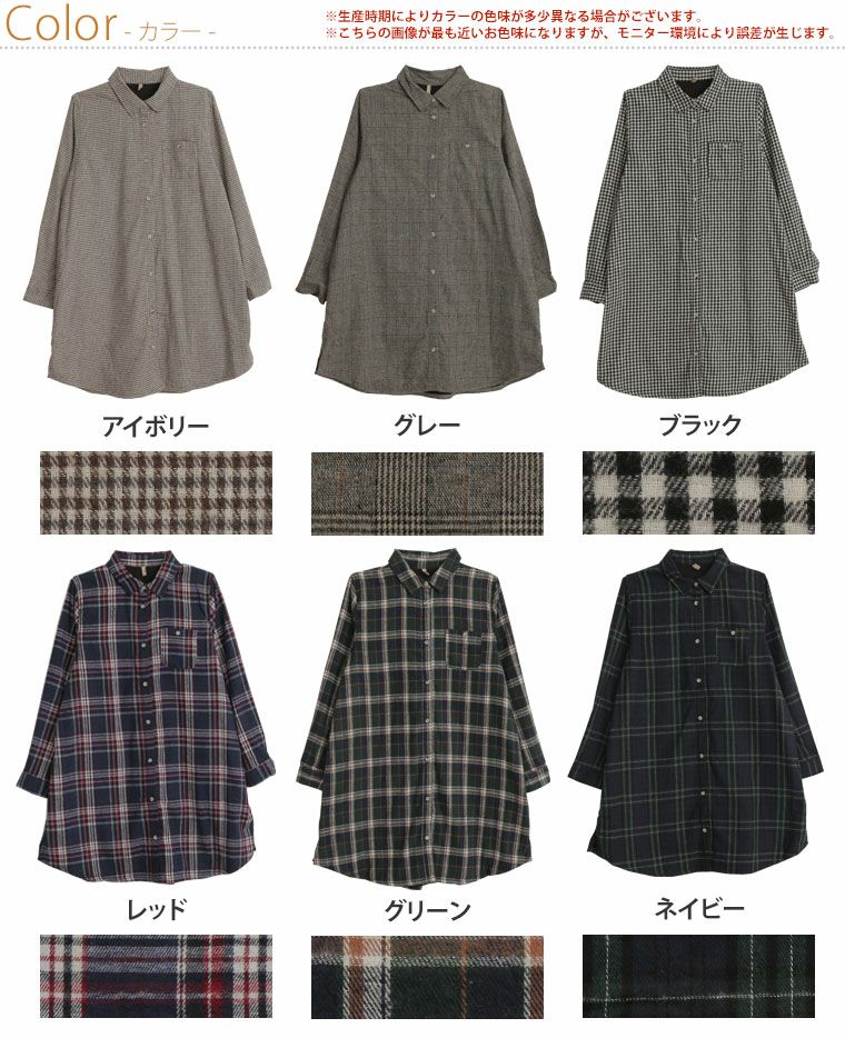 他の画像を見る ワンピ シャツワンピ 羽織り ポケット付き ネルシャツ LL 3L 4L 5L 6L 7L 8L 秋 冬 新色追加!! 身長別選べる2丈 フランネル チェック 細魅せ シャツワンピース | 大きいサイズの通販ならハッピーマリリン HIT100 小柄さん丈有 価格 ¥ 2,790 税込 4.29 お気に入りに登録する