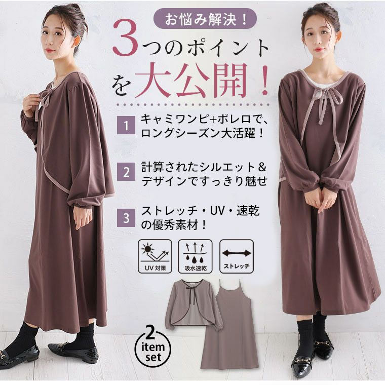 他の画像を見る オリジナル 上下セット 2点セット LL 3L 4L 5L 6L 春 夏 リボン カーデ 羽織り 3つの機能付き カットジョーゼット ボレロ×キャミワンピース アンサンブル コーデセット uv 接触冷感 | 大きいサイズの通販ならハッピーマリリン 価格 ¥ 3,990 税込 4.15 お気に入りに登録する
