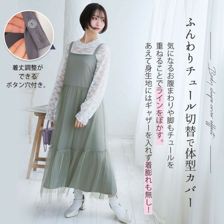 他の画像を見る ワンピ ジャンスカ LL 3L 4L 5L 6L 春 春物 春服 夏 夏物 夏服 ぽっちゃり ゆったり スポッと着られる!! ”楽かわ”シリーズ! ふんわりチュールで 下半身カバー キャミワンピース | 大きいサイズの通販ならハッピーマリリン 価格 ¥ 3,490 税込 3.86 お気に入りに登録する