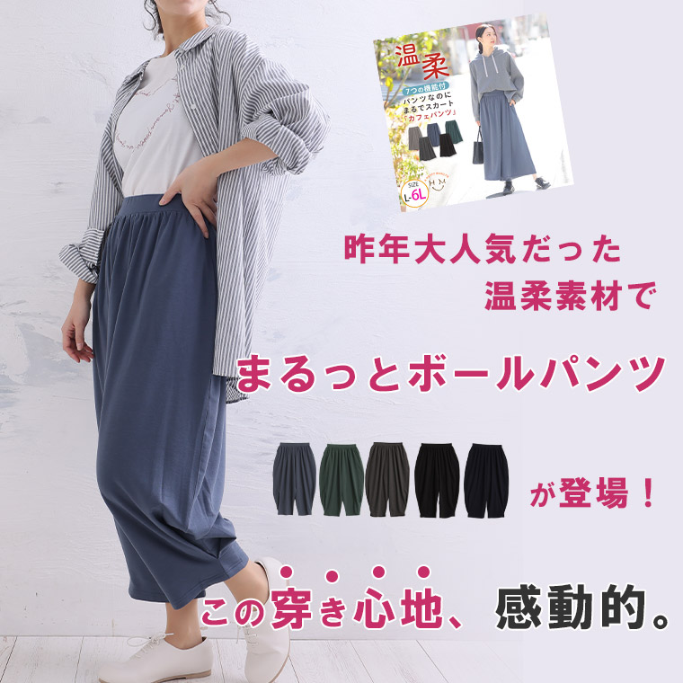 大きいサイズ 温柔素材で温活応援! 温活応援 ボールパンツ【ストレッチ】【ウェストゴム】