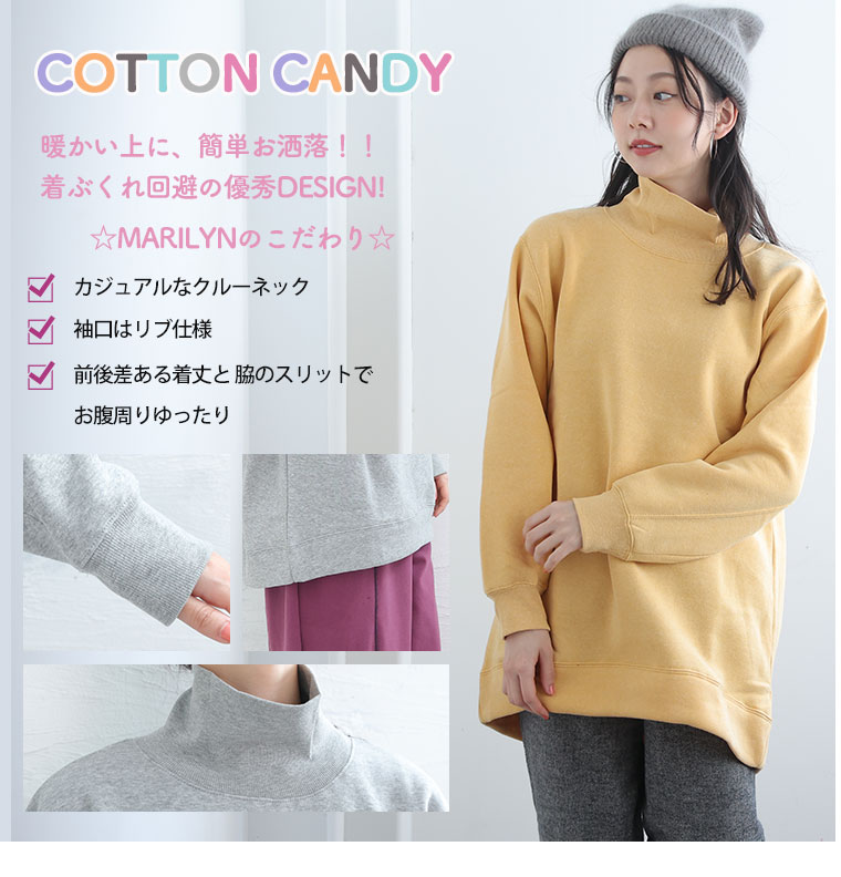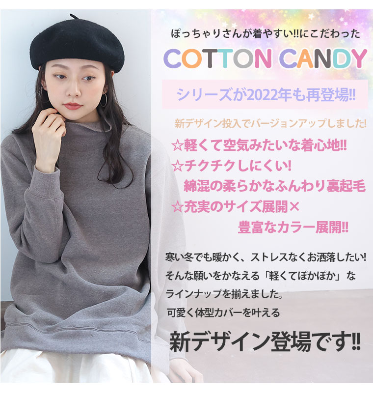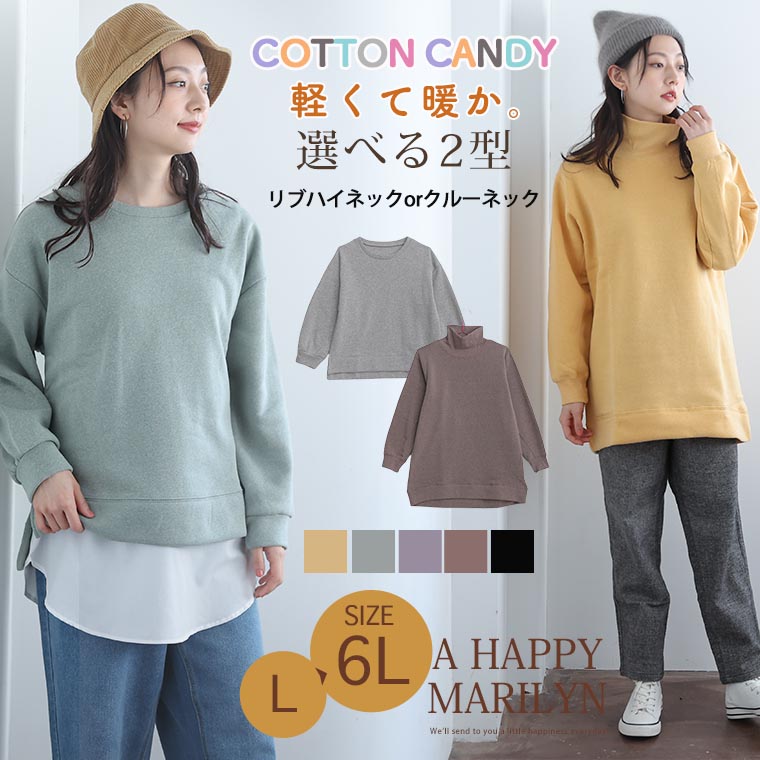 5. 大きいサイズ COTTON CANDY 裏起毛 リブハイネックとクルーネックから選べる スウェット