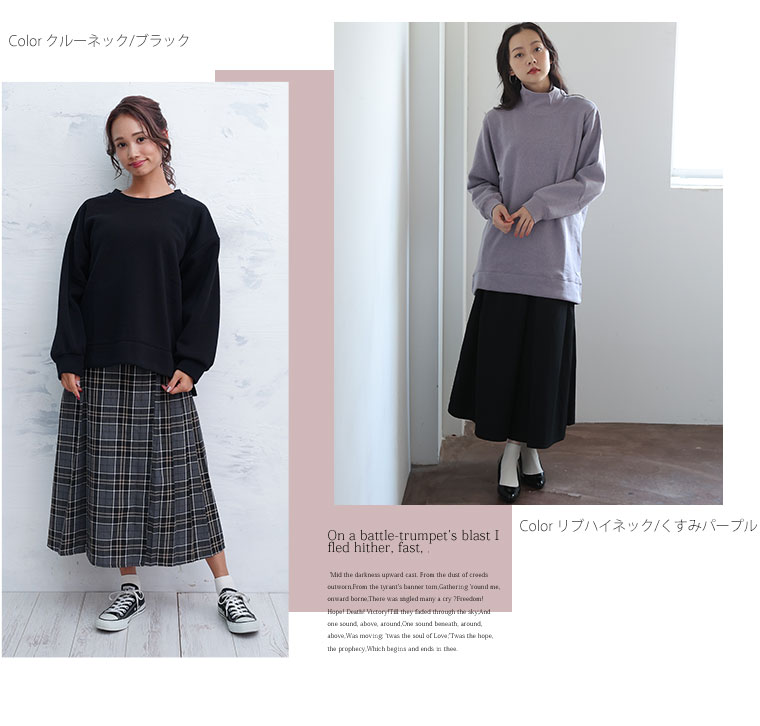 コーデ商品…(クルーネック/ブラック)Skirt (リブハイネック/くすみパープル)【類似品】Skirt
