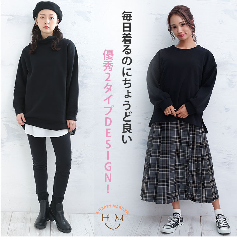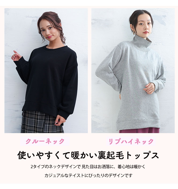 使いやすくて暖かい裏起毛トップス!2タイプのネックデザインで 見た目はお洒落に、着心地は暖かく。 カジュアルルなテイストにぴったりのデザインです