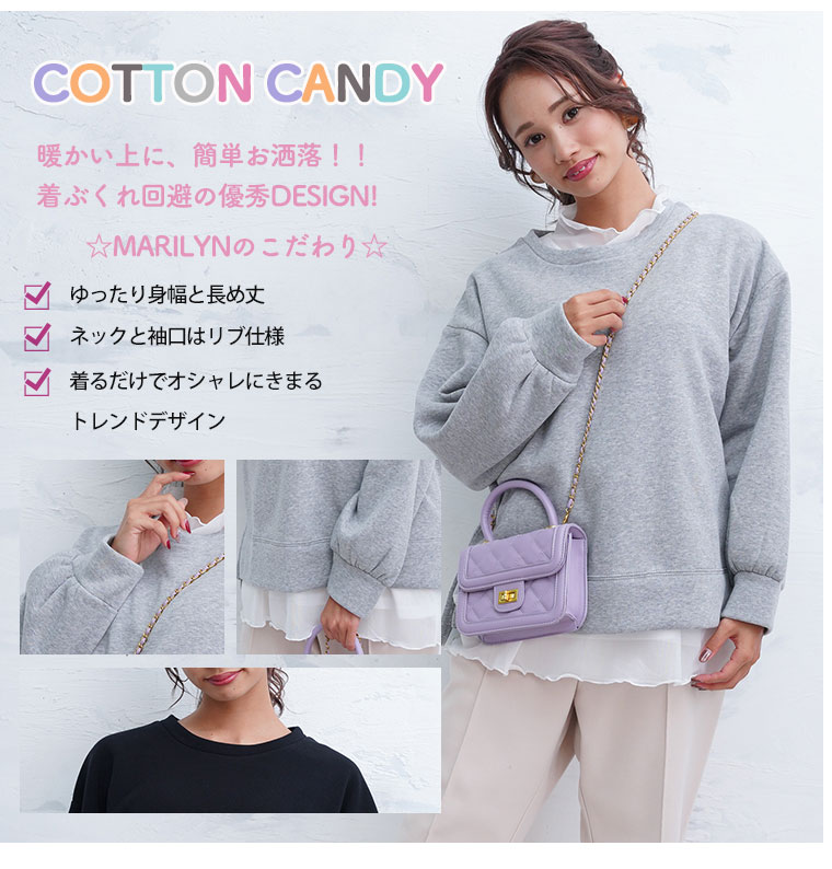 4. 大きいサイズ COTTON CANDY 裏起毛 リブハイネックとクルーネックから選べる スウェット