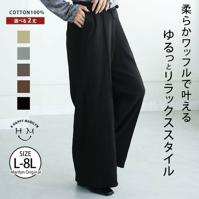 他の画像を見る ボトムス LL 3L 4L 5L 6L 7L 8L 秋 秋物 秋服 冬 冬服 ぽっちゃり 呼吸するコットン100% 楽のび ワッフルシリーズ 2丈から選べる スッキリパンツ 綿100 ストレッチ ゆったり【ウェストゴム】【ストレッチ】 | 大きいサイズの通販ならハッピーマリリン 価格 ¥ 2,790 税込 4.25 お気に入りに登録する