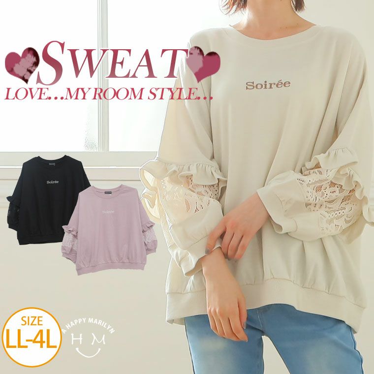 ロゴ刺繍袖レース切替トップス