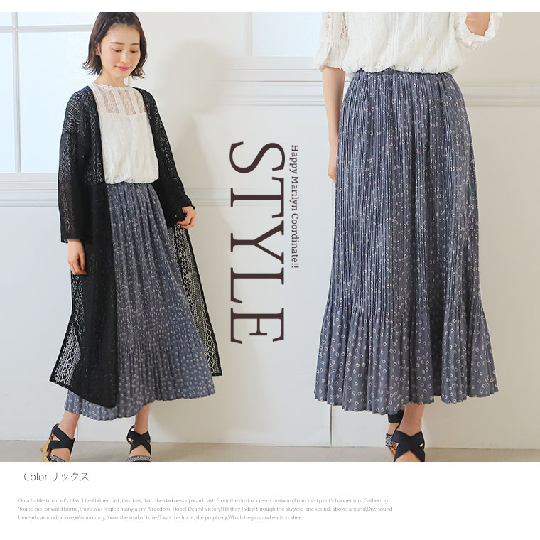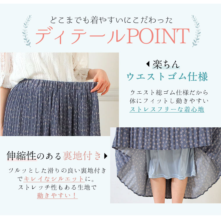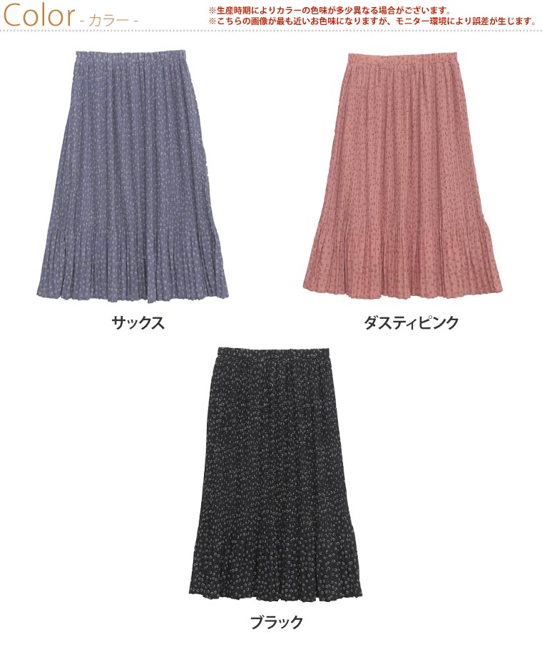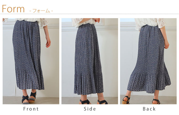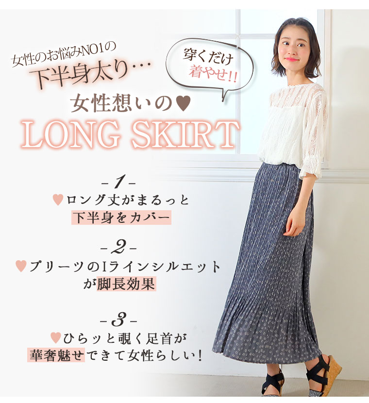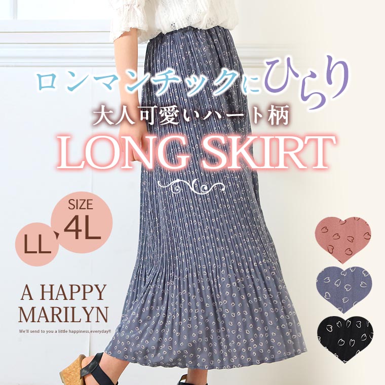 4. 大きいサイズ デシンハート柄プリント 86丈 消しプリーツスカート ロング丈