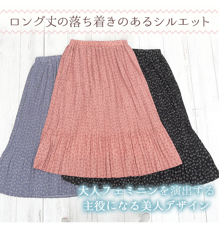 大きいサイズ デシンハート柄プリント 86丈 消しプリーツスカート ロング丈