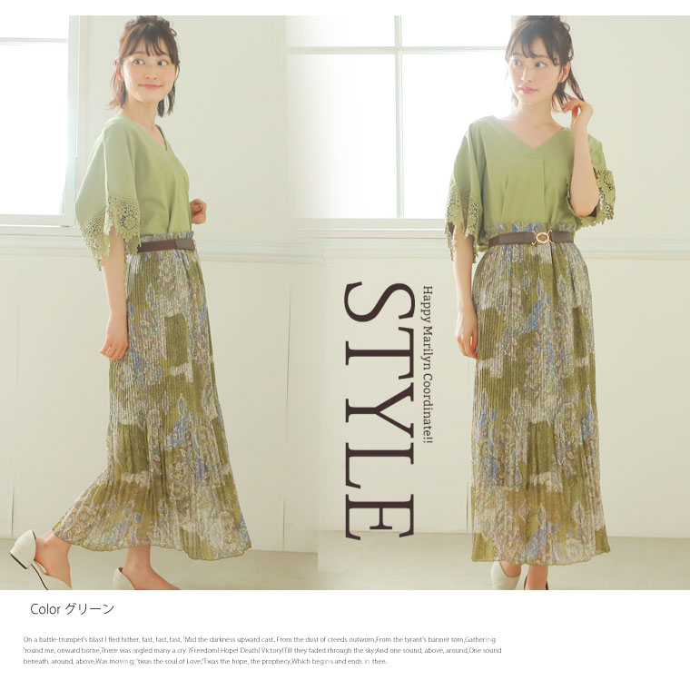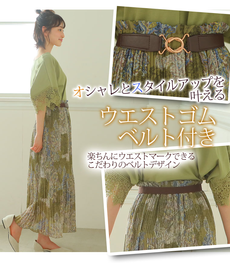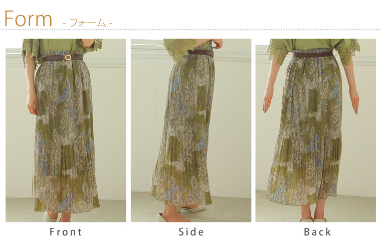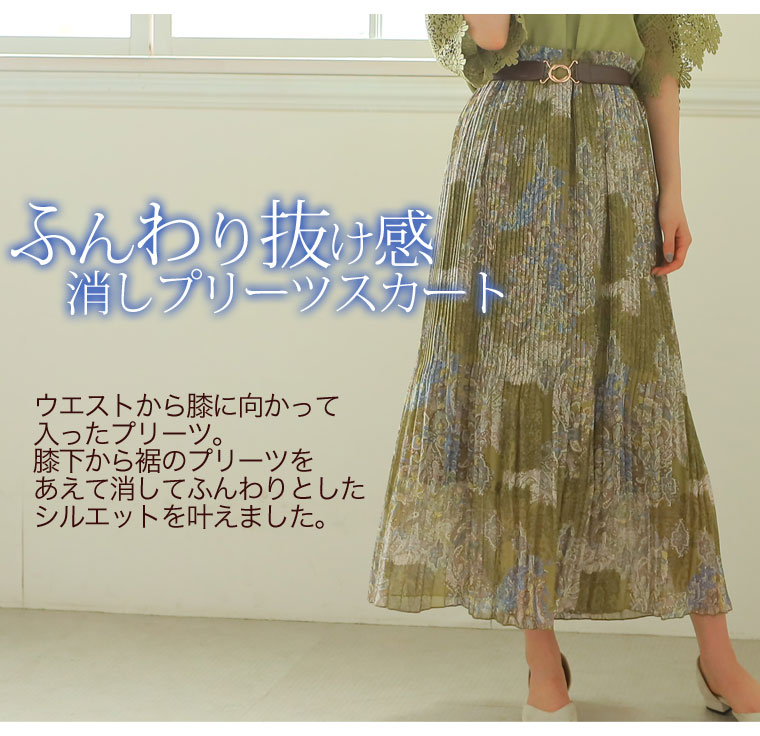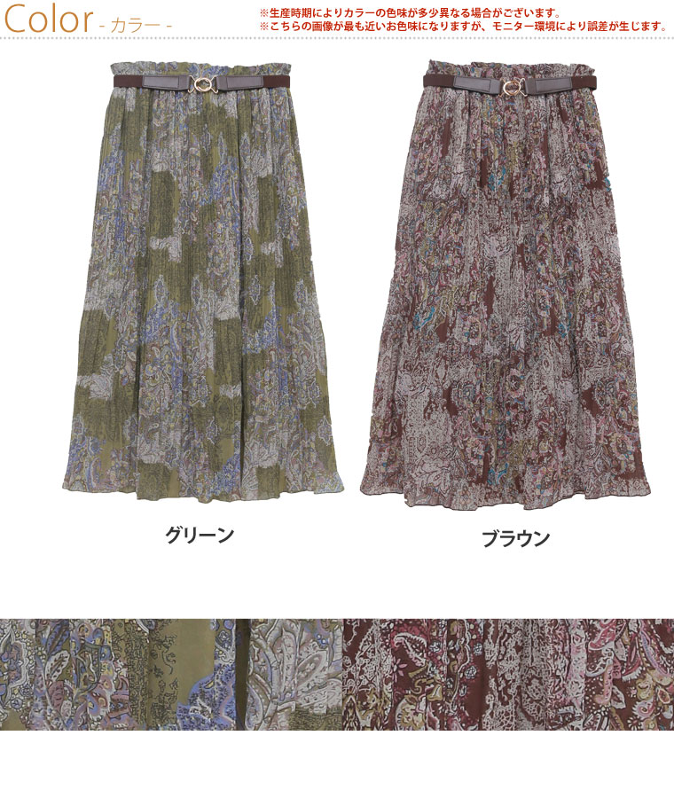 上品ペイズリー柄ベルト付き消しプリーツスカート