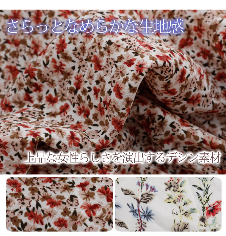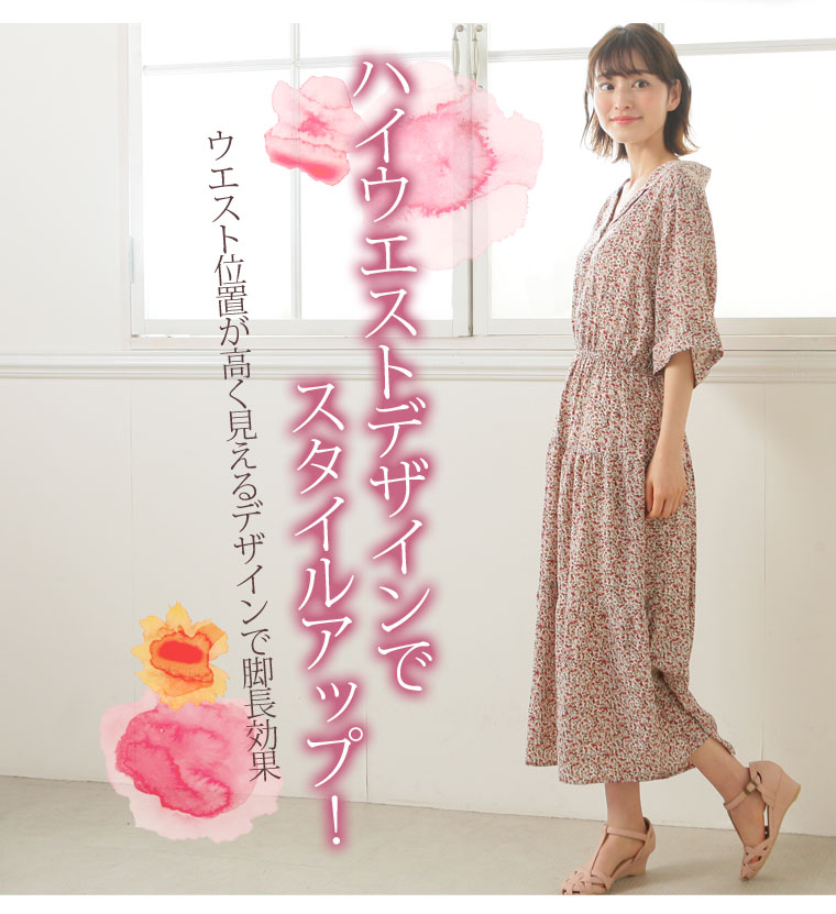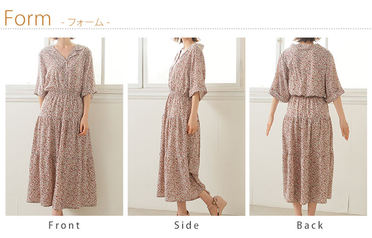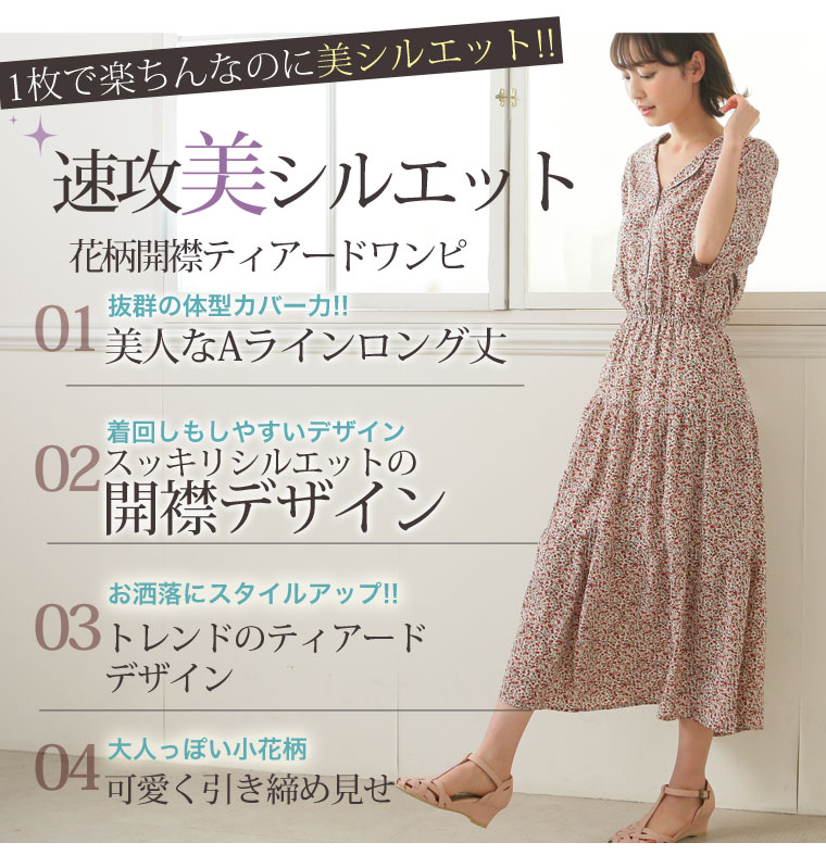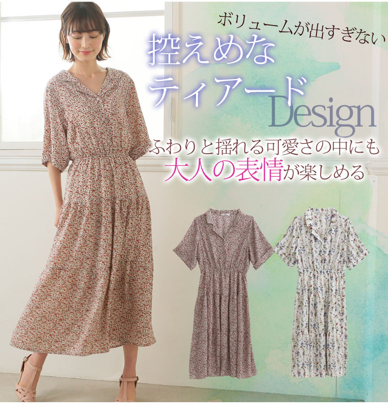 花プリントデシン 開襟ティアードワンピース