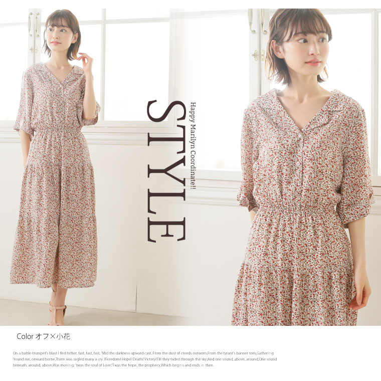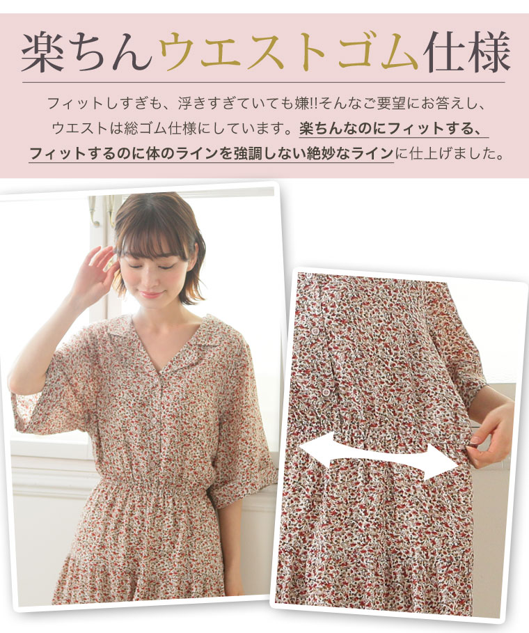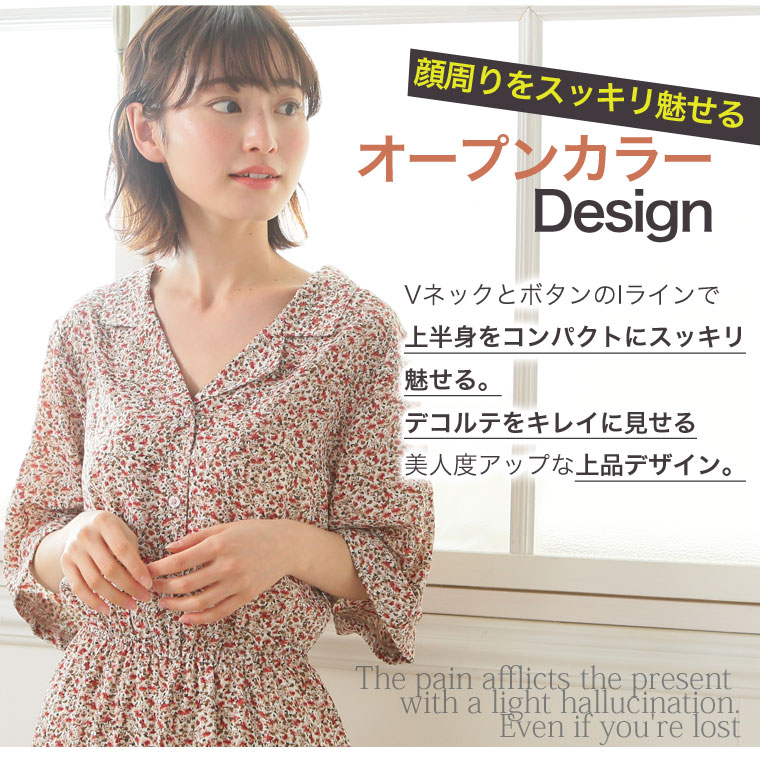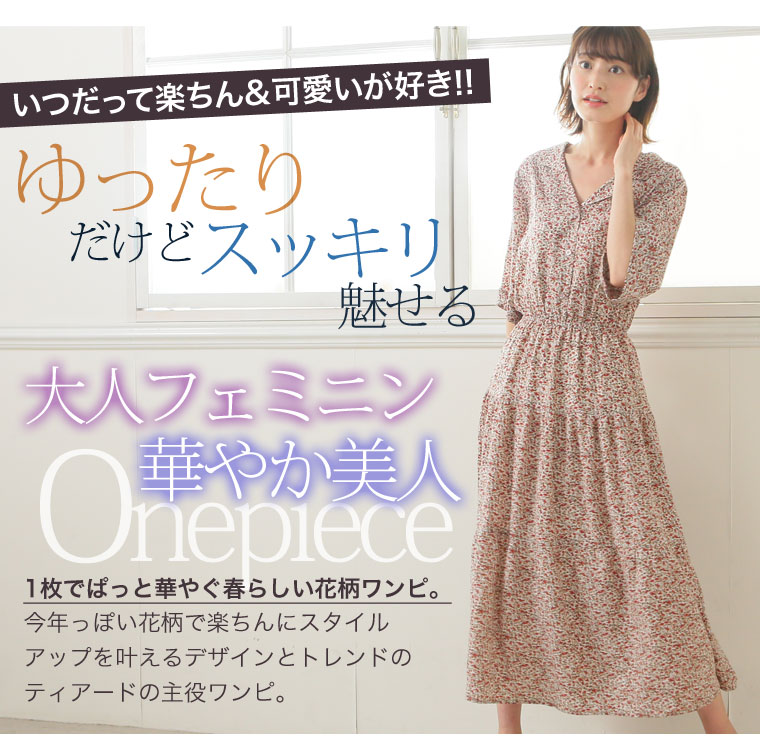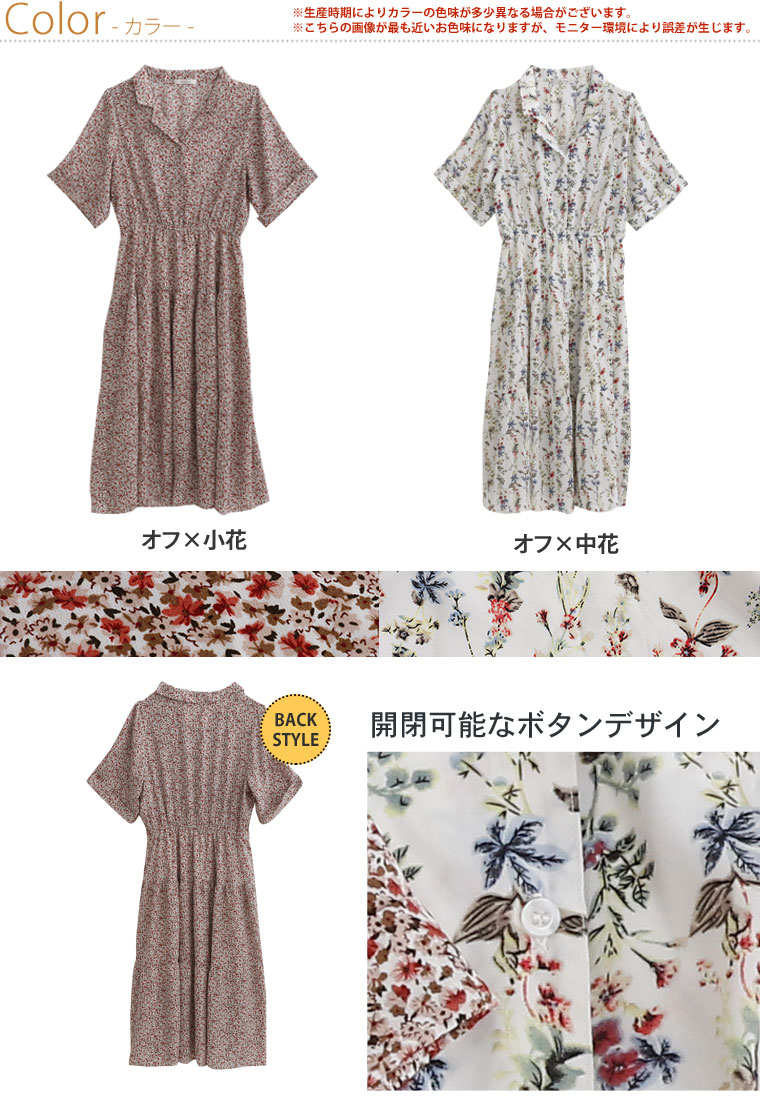 花プリントデシン 開襟ティアードワンピース