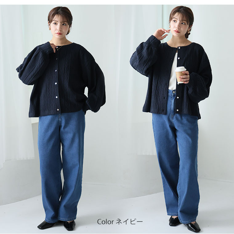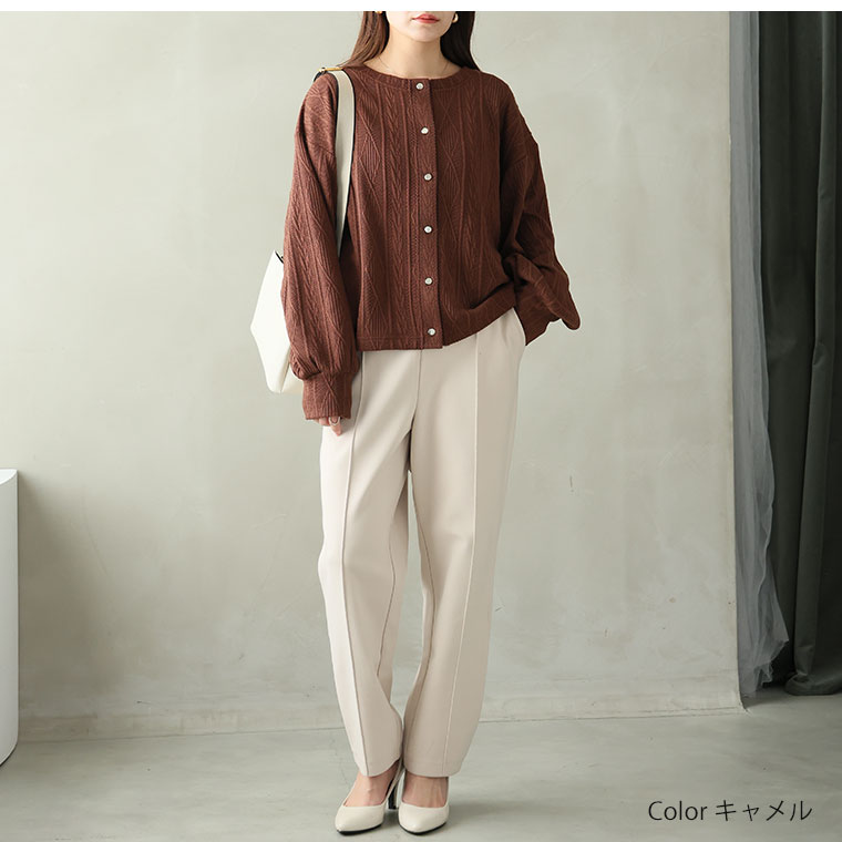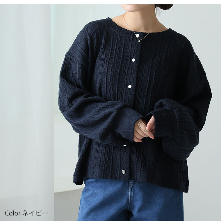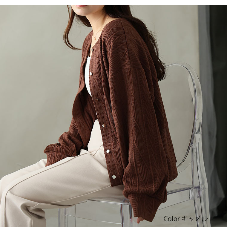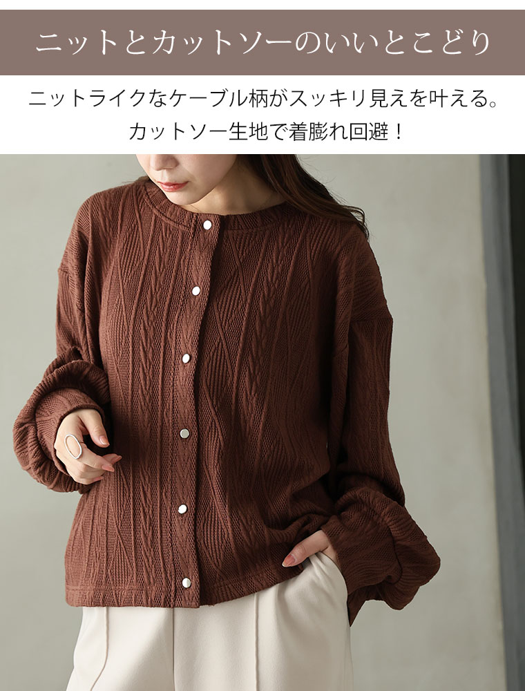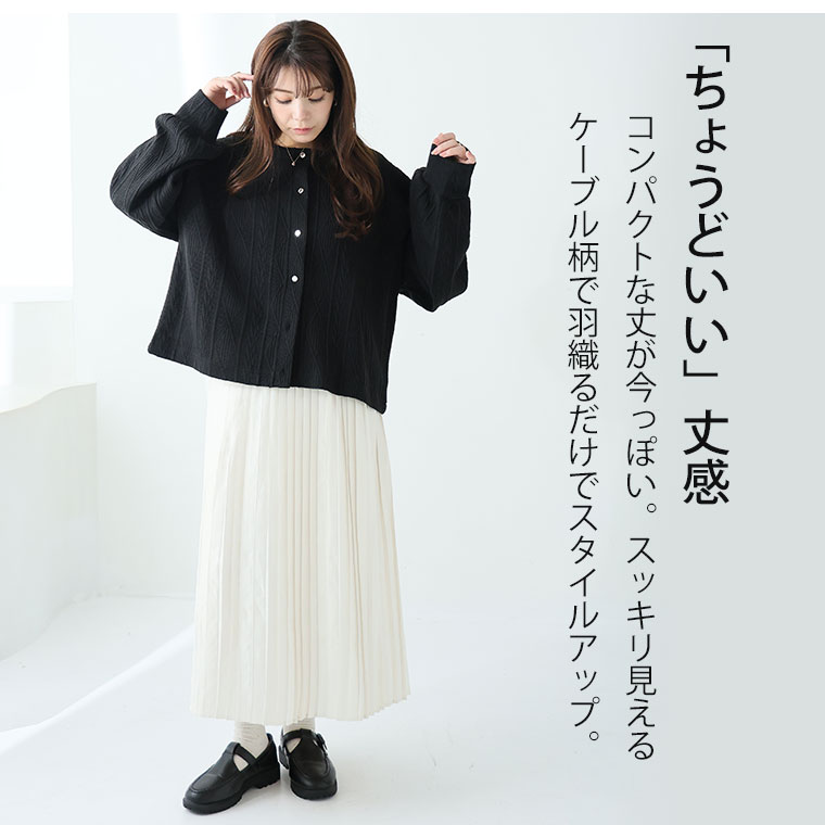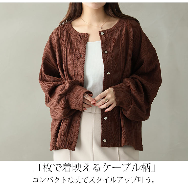 ニット見えするのに軽くてごわつかないケーブル柄カーディガン
