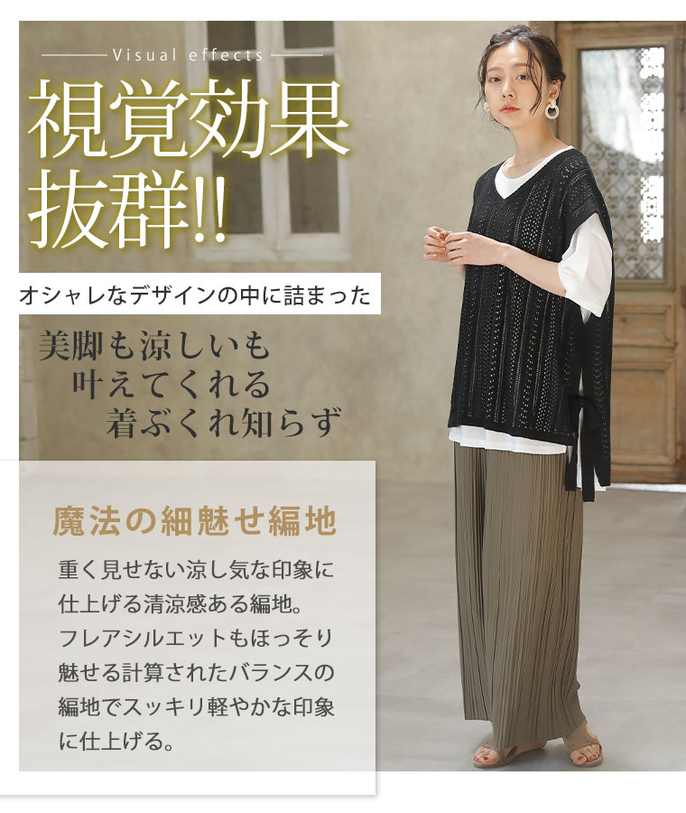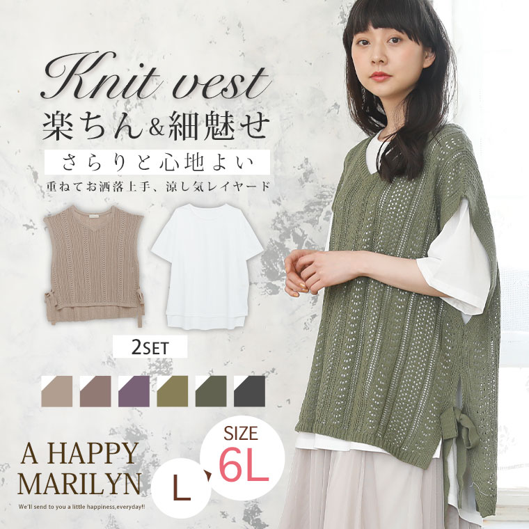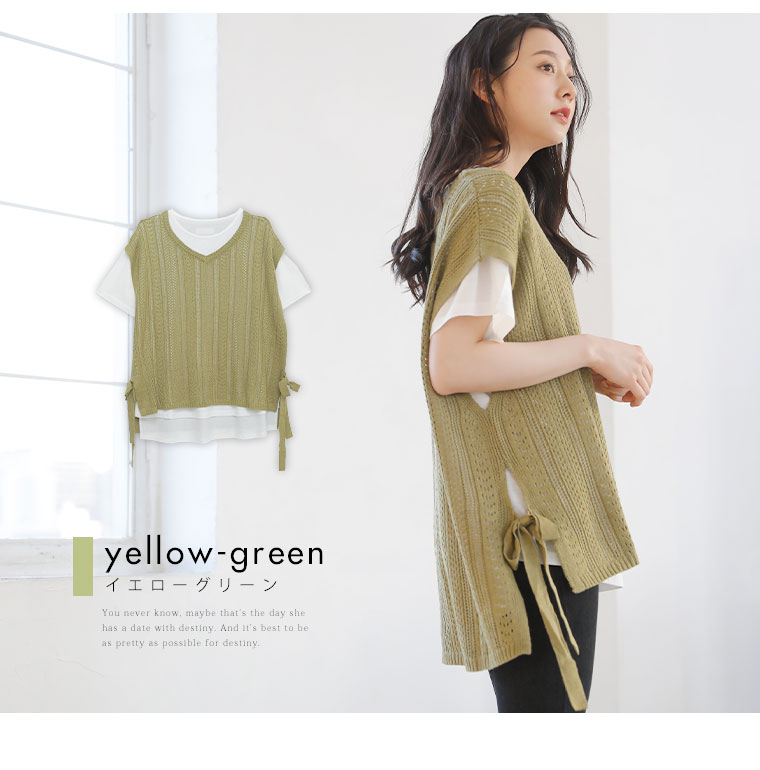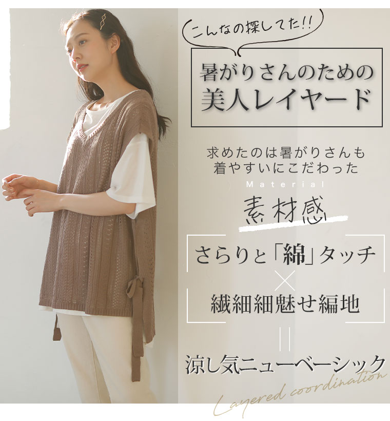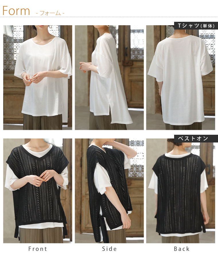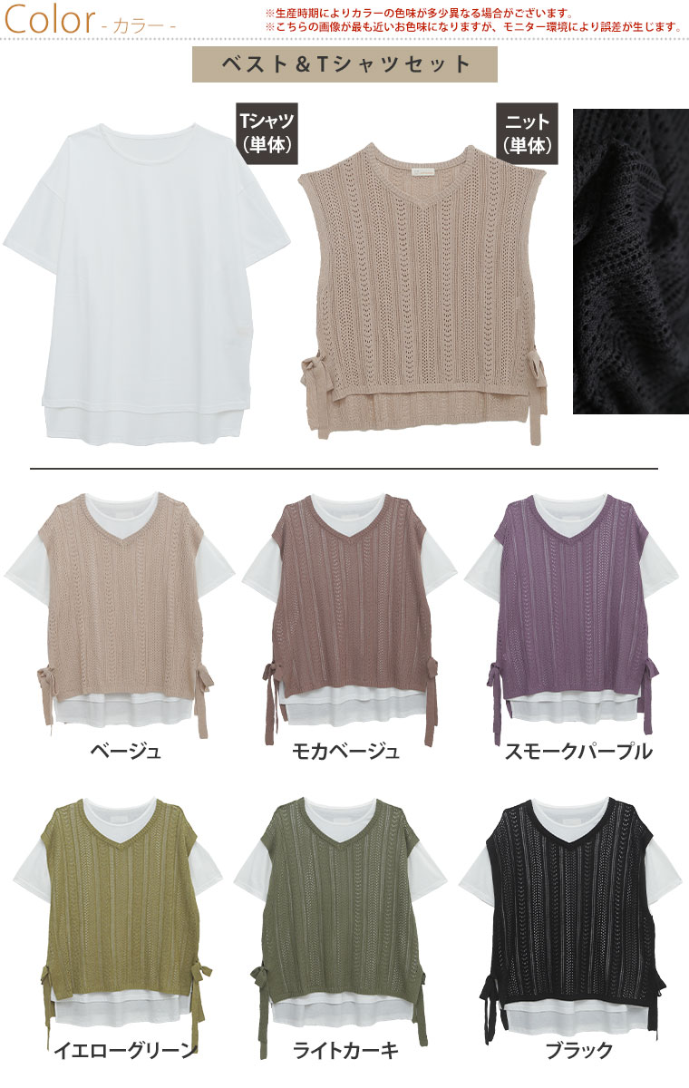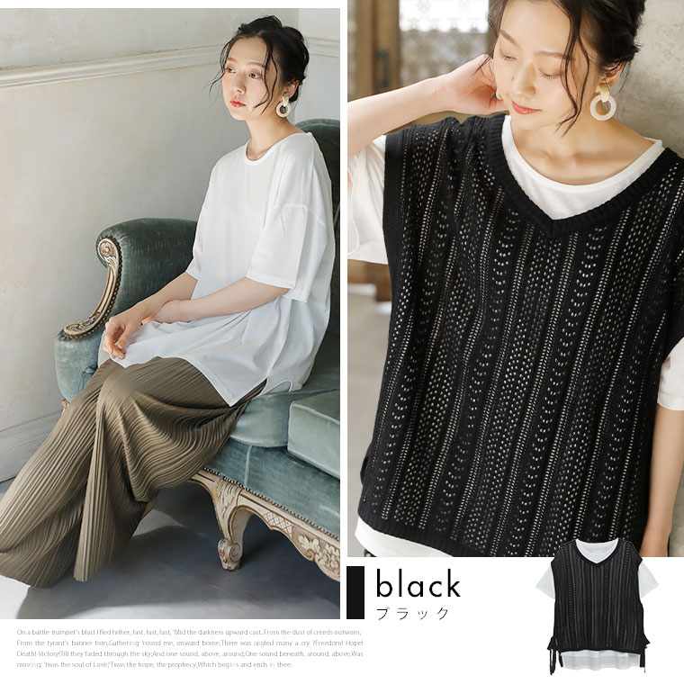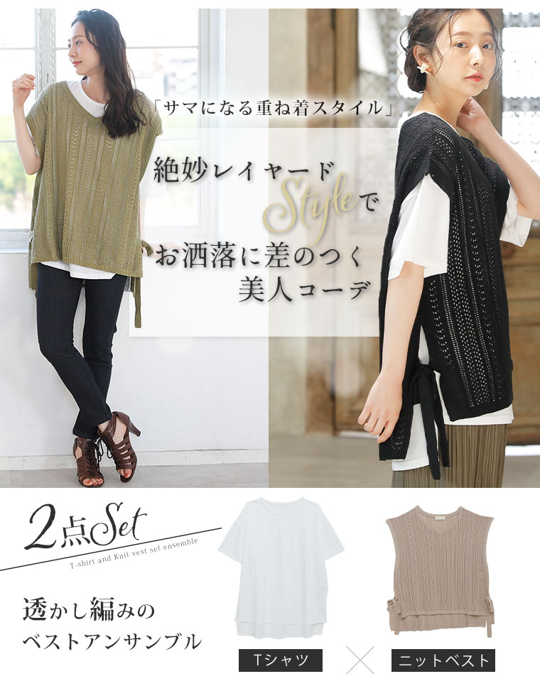 サラリと心地よい 涼しげレイヤードのTshirt&ベストセット