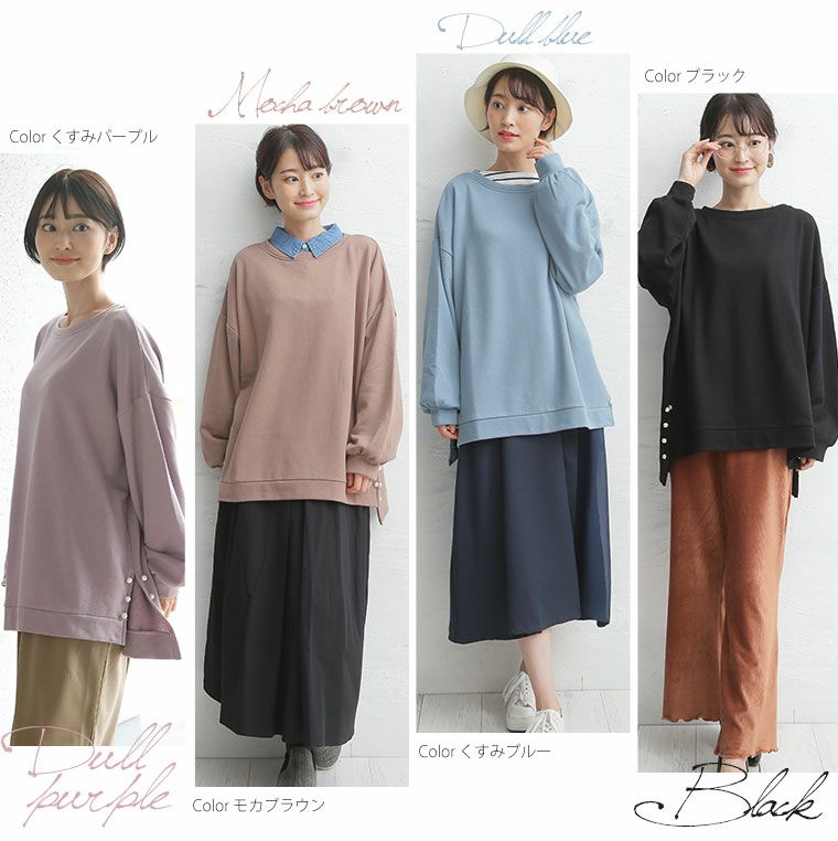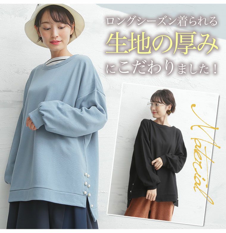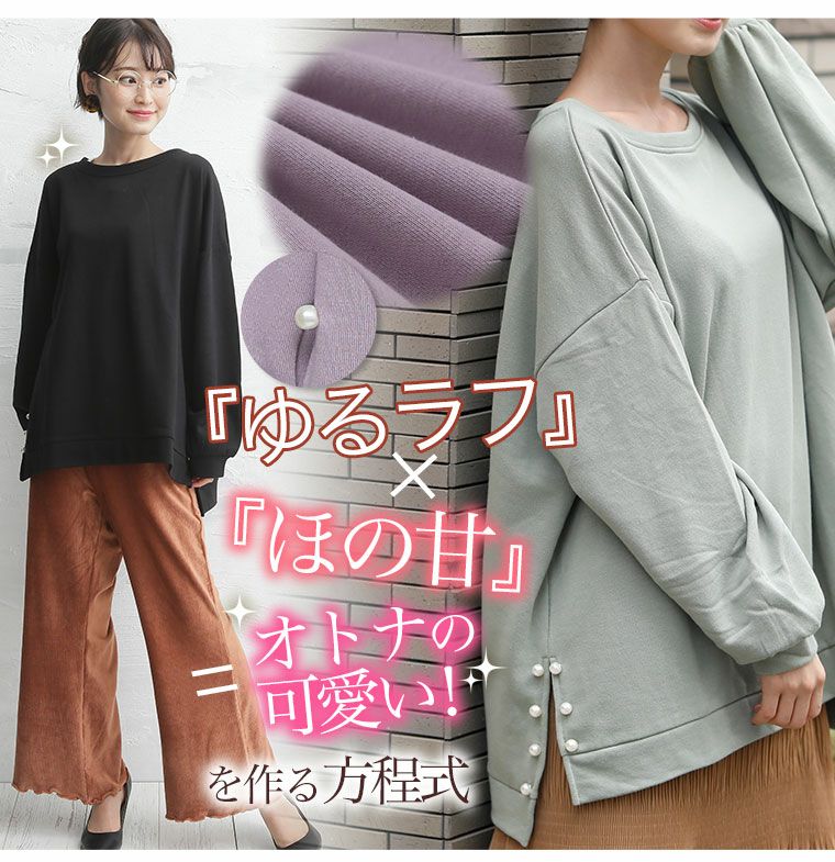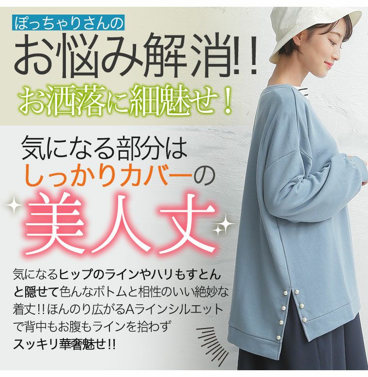 他の画像を見る オリジナル トップス スウェット LL 3L 4L 5L 6L 秋 秋物 秋冬 ぽっちゃり ゆったり かわいい おしゃれ カジュアル ナチュラル 【TC裏毛シリーズ】脇スリット パール付き プルオーバー | 大きいサイズの通販ならハッピーマリリン 価格 ¥ 2,190 税込 3.88 在庫切れ お気に入りに登録する