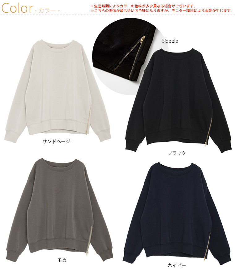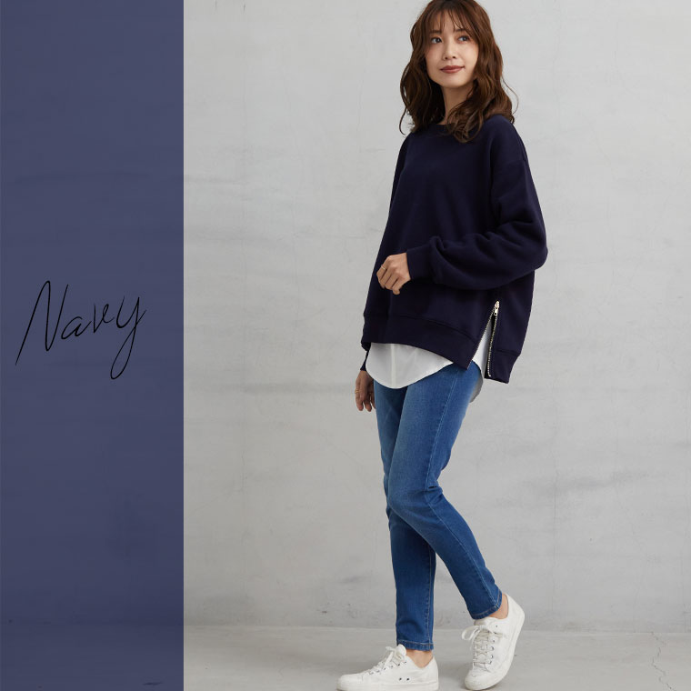 あったかやわらか裏起毛サイドジップスウェット