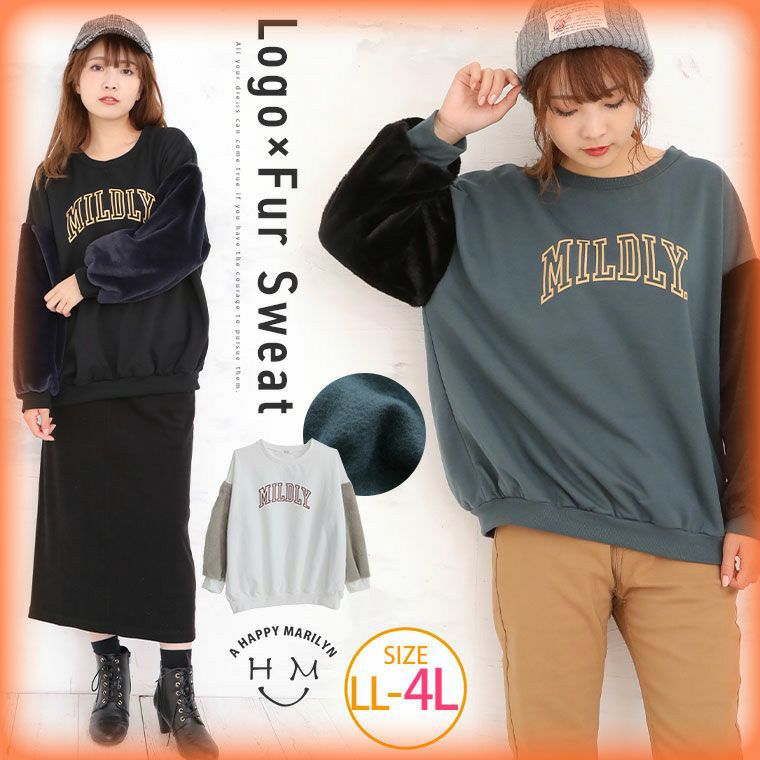 裏起毛 袖ファー使いプルオーバー