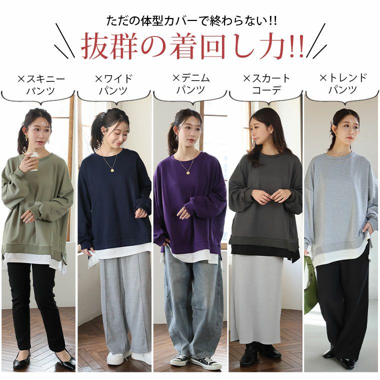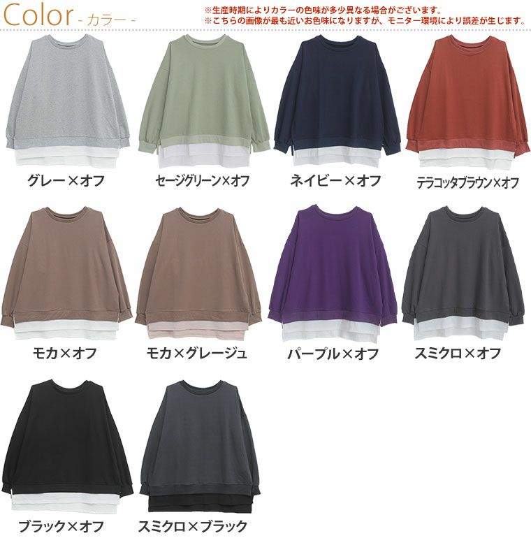 他の画像を見る オリジナル LL 3L 4L 5L 6L 7L 8L 9L 10L 秋 秋物 秋冬 ぽっちゃり ゆったり お腹 胸周り 腰周り かわいい おしゃれ 春 ゆるっと楽ちん! 着ぶくれ回避の 重ね着風 ミニ裏毛 プルオーバー | 大きいサイズの通販ならハッピーマリリン HIT100 価格 ¥ 2,890 税込 4.39 お気に入りに登録する
