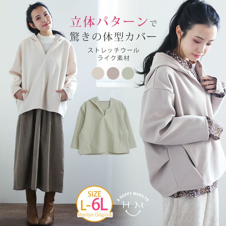 他の画像を見る オリジナル カットソー LL 3L 4L 5L 6L 冬 冬物 冬服 ぽっちゃり ゆったり かわいい おしゃれ カジュアル プラスサイズ 胸周り 長袖 春 ストレッチ ウールライク素材 サイドタック入り フード プルオーバー | 大きいサイズの通販ならハッピーマリリン SALE 定価 ¥ 3,490 のところ 価格 ¥ 1,740 税込 3.60 お気に入りに登録する