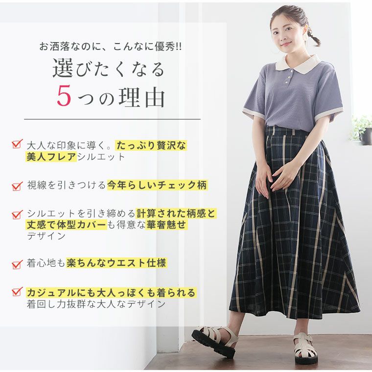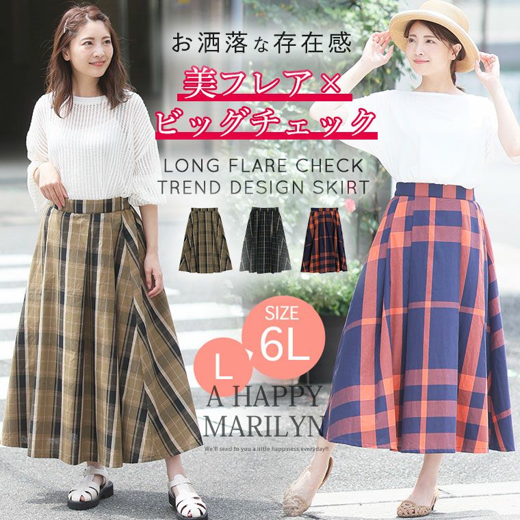 他の画像を見る オリジナル ボトムス マキシスカート LL 3L 4L 5L 6L 秋 秋冬 ぽっちゃり ゆったり お腹 太もも お尻 腰周り プラスサイズ 春 リニューアル!!のこなれ感 美フレア ビッグチェック ロングスカート | 大きいサイズの通販ならハッピーマリリン SALE 定価 ¥ 3,790 のところ 価格 ¥ 3,220 税込 3.67 お気に入りに登録する