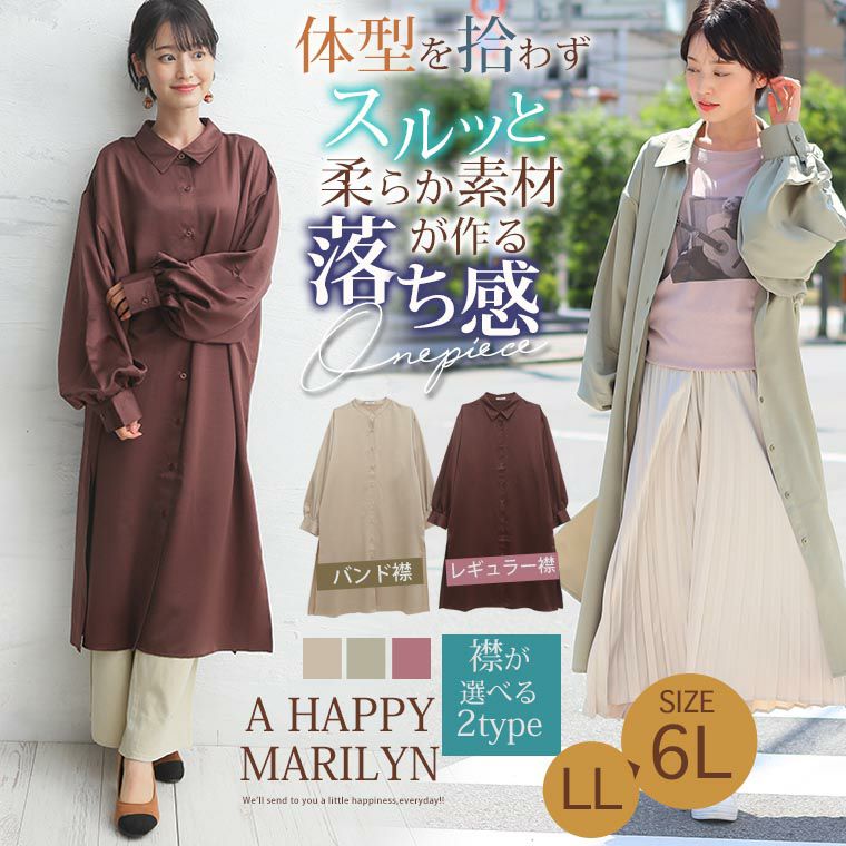 他の画像を見る ワンピ デザインワンピ LL 3L 4L 5L 6L 秋 秋物 秋冬 ぽっちゃり ゆったり かわいい 二の腕カバー 腰周り 長袖 シャツワンピ おしゃれ 襟が選べる ランタン スリーブ ワンピース | 大きいサイズの通販ならハッピーマリリン 価格 ¥ 2,490 税込 3.10 お気に入りに登録する