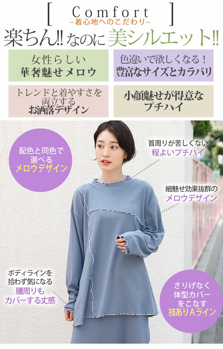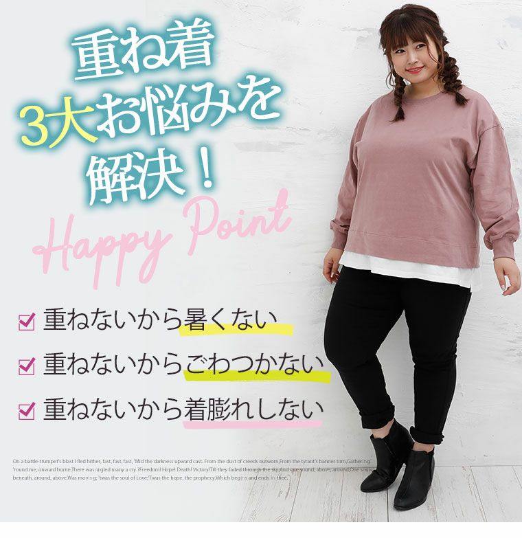他の画像を見る オリジナル プルオーバー LL 3L 4L 5L 6L 秋 秋物 秋冬 ぽっちゃり ゆったり お腹 胸周り 腰周り 楽して細魅せ!やわらかリブの華奢魅せ美人 レイヤード風デザイン プチハイ トップス | 大きいサイズの通販ならハッピーマリリン 価格 ¥ 2,490 税込 4.40 在庫切れ お気に入りに登録する