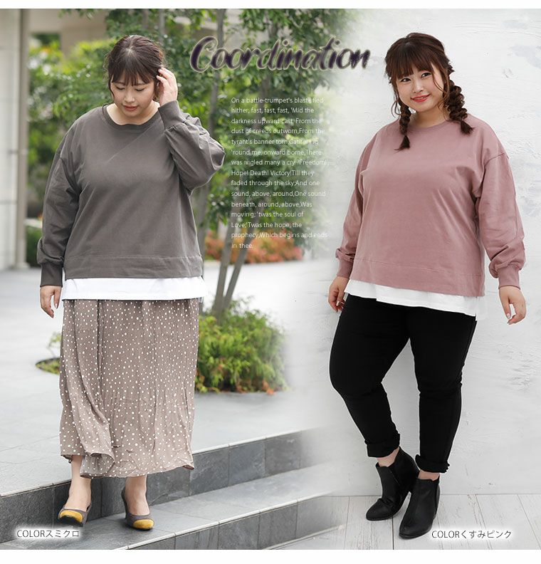 他の画像を見る オリジナル カットソー LL 3L 4L 5L 6L 7L 8L 秋 秋物 秋冬 ぽっちゃり ゆったり かわいい おしゃれ カジュアル ナチュラル きれいめ 【起毛天竺】 裾レイヤード風 長袖 プルオーバー | 大きいサイズの通販ならハッピーマリリン 価格 ¥ 1,490 税込 4.12 在庫切れ お気に入りに登録する