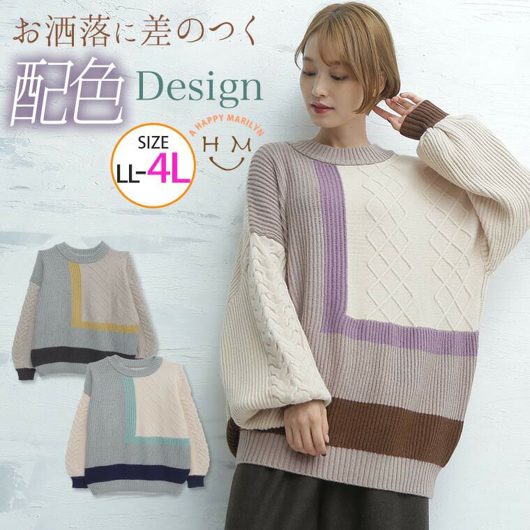 他の画像を見る プルオーバー LL 3L 4L 秋 秋物 秋服 冬 冬物 冬服 ぽっちゃり ゆったり かわいい おしゃれ カジュアル ナチュラル きれいめ 上品 ガーリー 配色切替 部分 ケーブル ニット | 大きいサイズの通販ならハッピーマリリン 価格 ¥ 3,990 税込 在庫切れ お気に入りに登録する