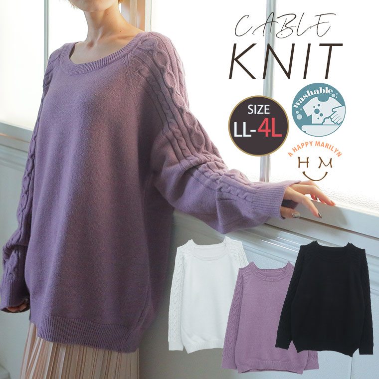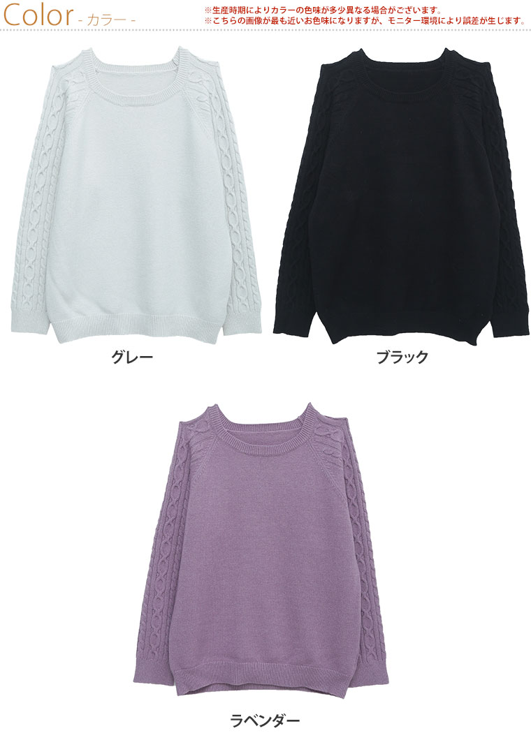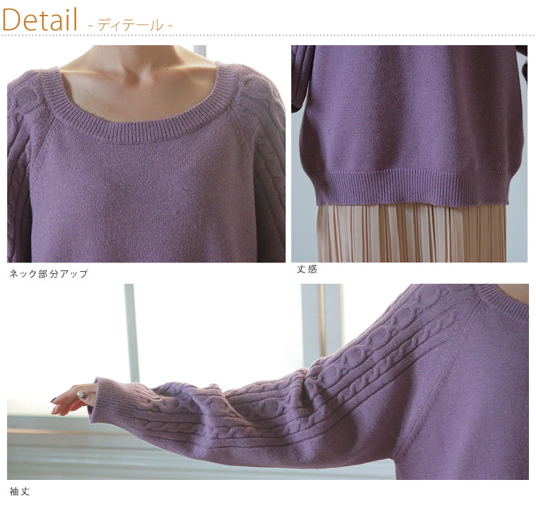 お家で洗える 袖ケーブルラグランニット