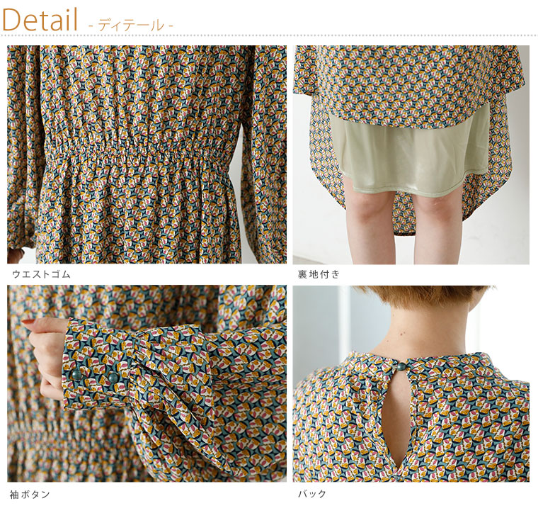 華奢魅せパワショルと上品スタンドカラーがお洒落!幾何学柄ワンピース