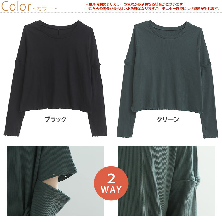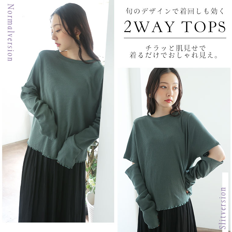 大きいサイズ 2WAY スリットスリーブ テレコリブ トップス