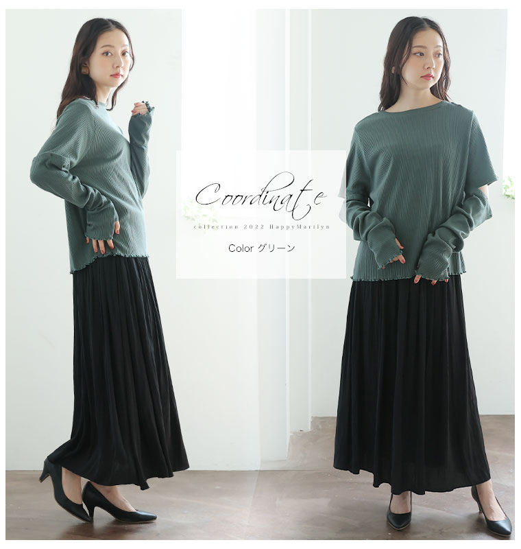 3. 大きいサイズ 2WAY スリットスリーブ テレコリブ トップス