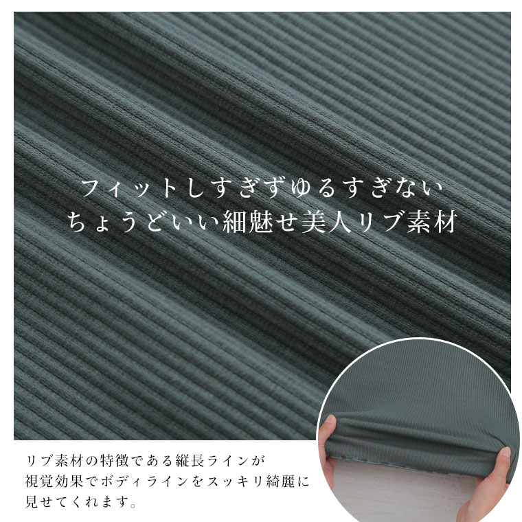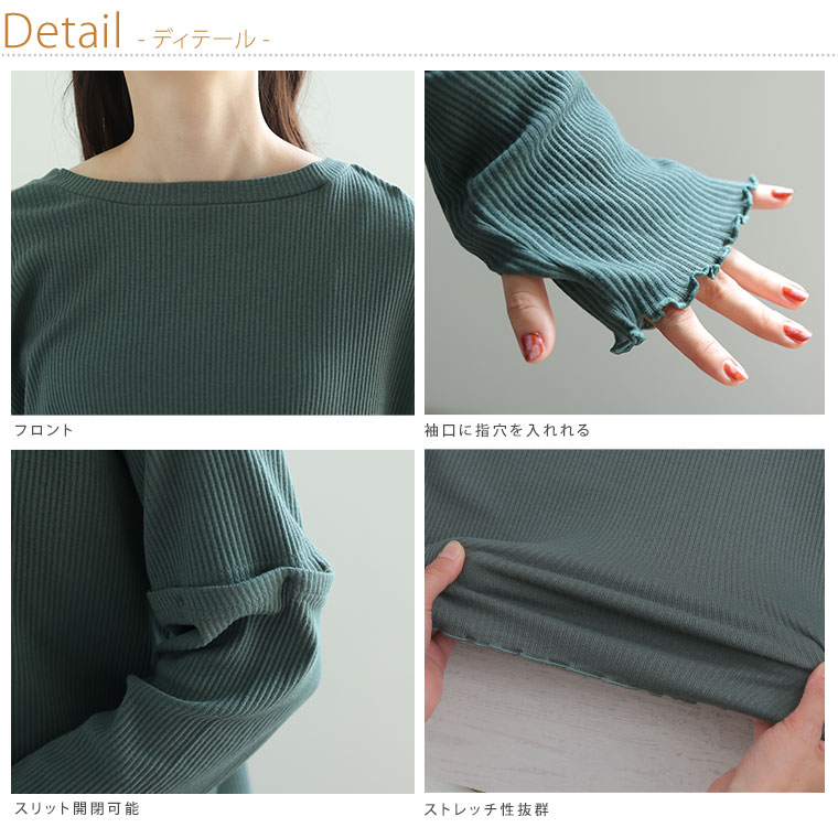 4. 大きいサイズ 2WAY スリットスリーブ テレコリブ トップス