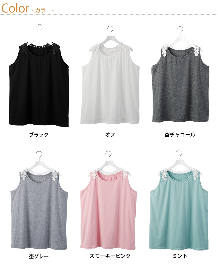 オリジナル タンク インナー LL 3L 4L 5L 6L ぽっちゃり かわいい おしゃれ ナチュラル カジュアル オシャレ 【オススメ】 レースたたき付け タンクトップ【メール便可1】