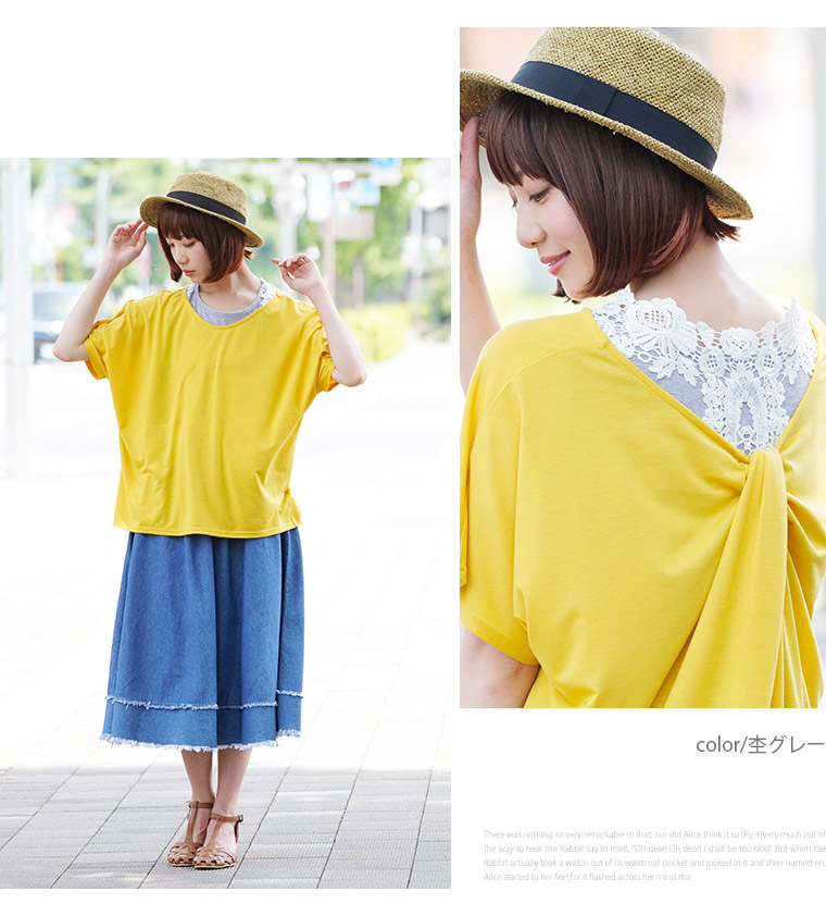 前レースのタンクトップが可愛くて気に入っているので、 背中レースも試そうと思って買いました。 人気のせいか、ワンサイズ大きいのものしかなく そのせいか持っている服とちら見え部分が上手く合いません。 背中見せは髪で隠れてしまいました~ 残念