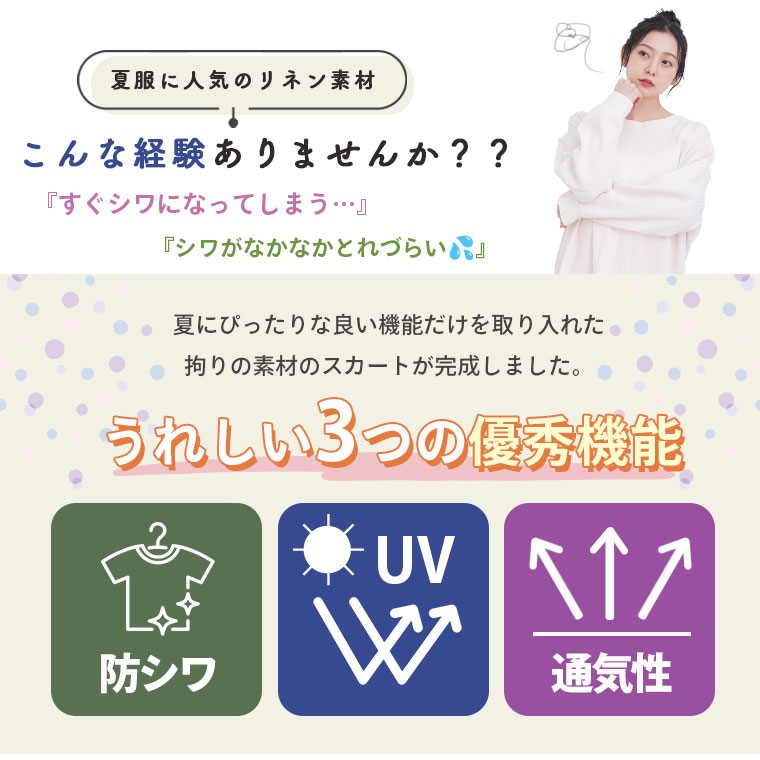 3. 大きいサイズ 足取り涼やか!! リネン混 柔らか ベイカースカート