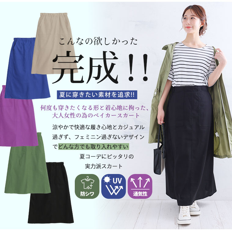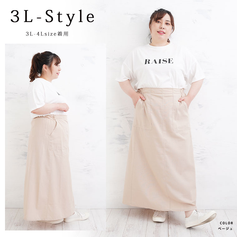 大きいサイズ 足取り涼やか!! リネン混 柔らか ベイカースカート