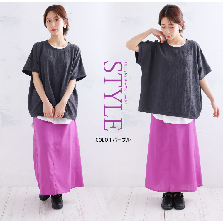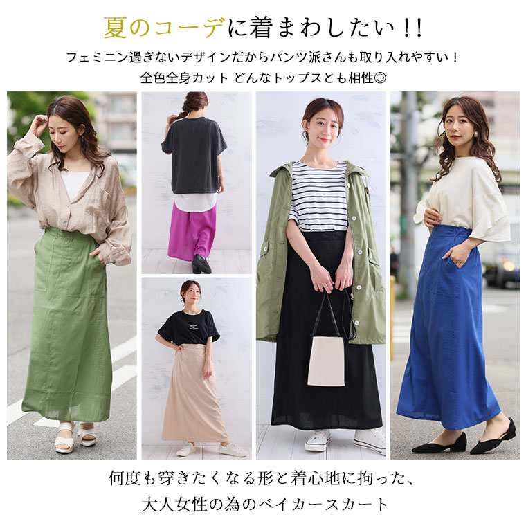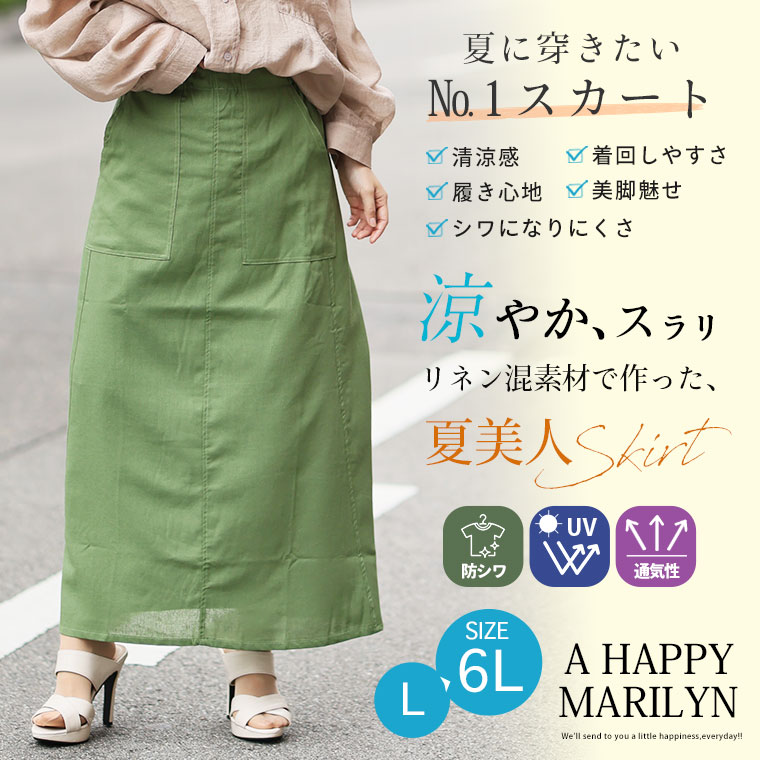 4. 大きいサイズ 足取り涼やか!! リネン混 柔らか ベイカースカート