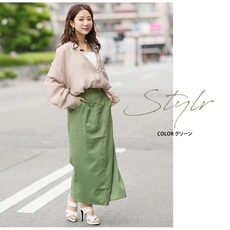 涼やかにスラリと夏美人なリネン混ベイカースカート