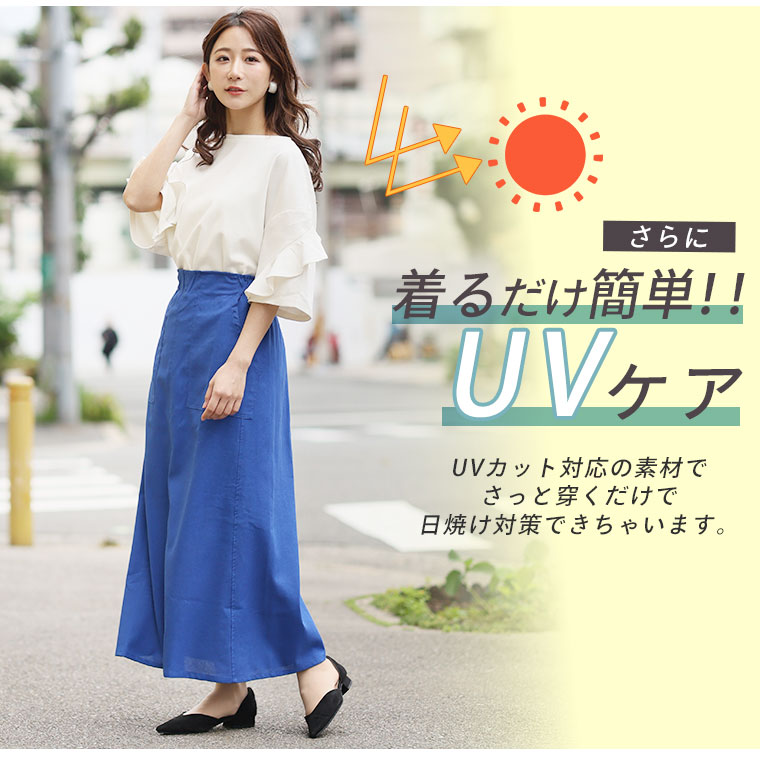 ■着用感:ちょうどいい、■着丈:足首、■バスト:-、■腕回り:-、■袖口:-、■袖丈:-、■首回り:-、■ウエスト:ちょうどいい、■ヒップ:ちょうどいい、■太もも:- ●ハリがあるさらっとした素材で涼やかな着心地です。