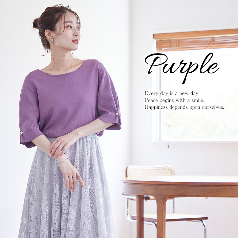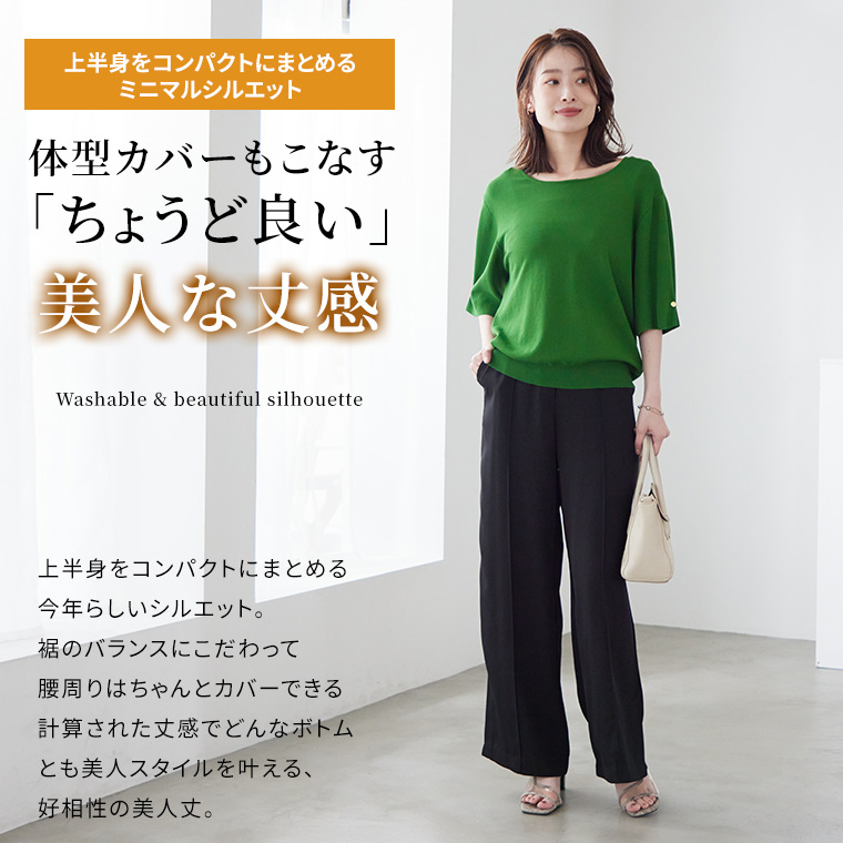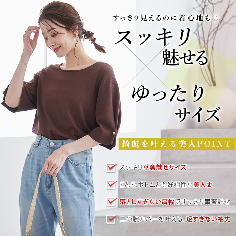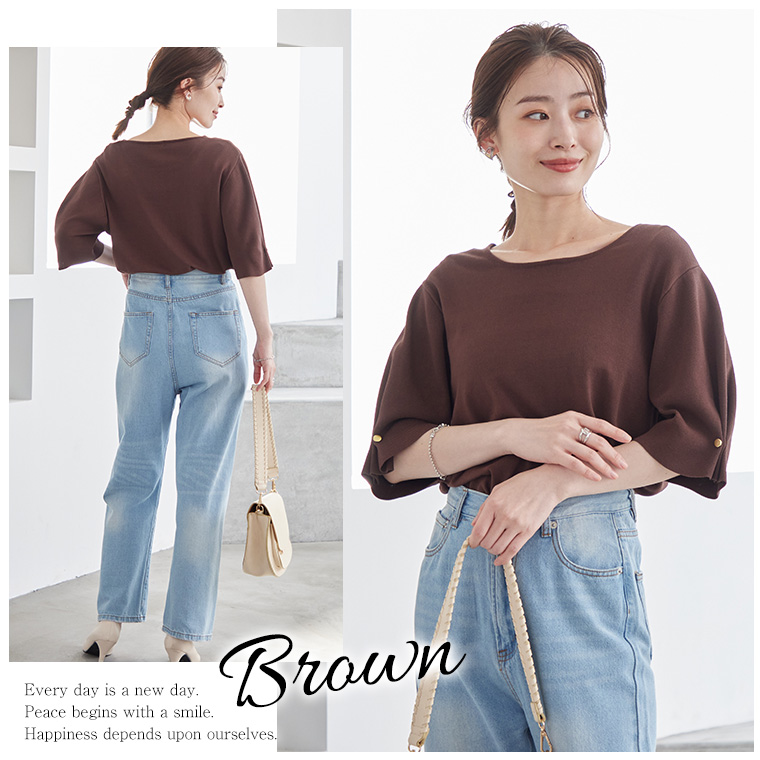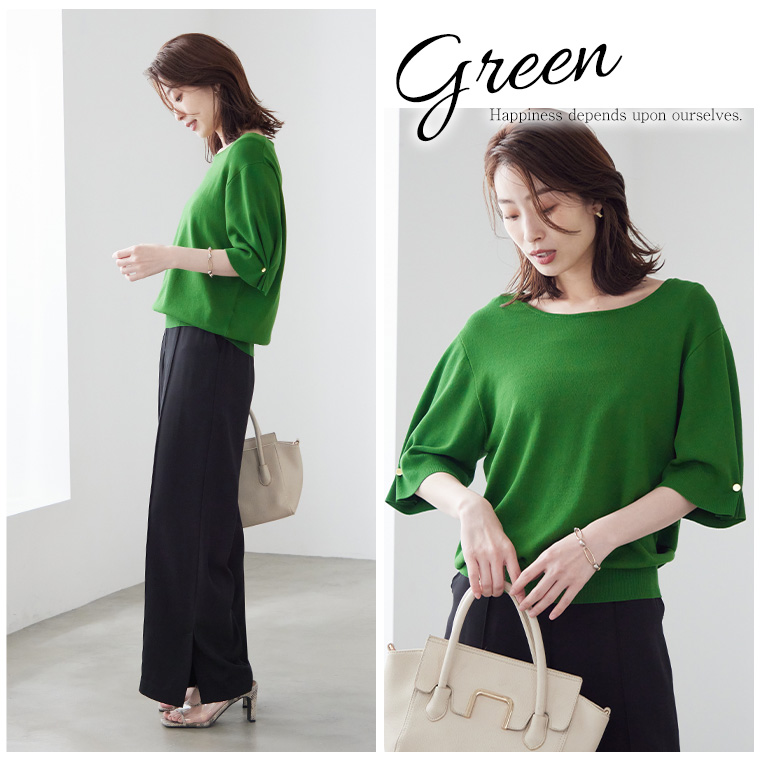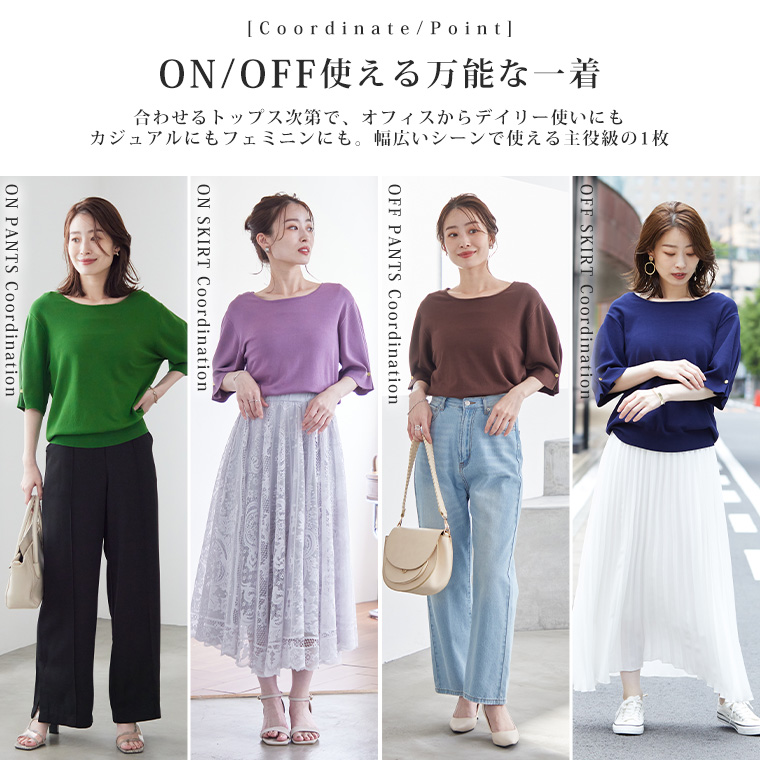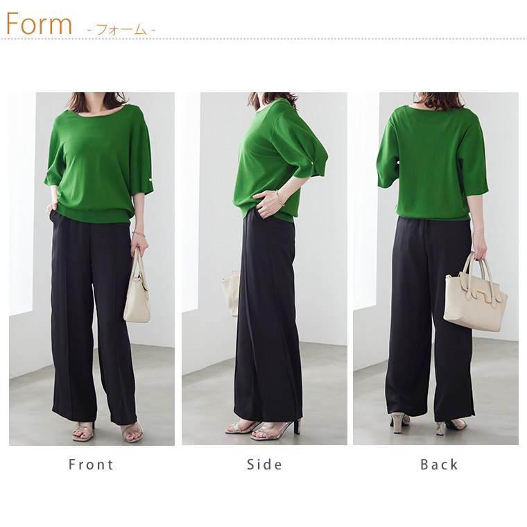 ひんやり接触冷感UV洗える12G金釦付袖タックニットプルオーバー