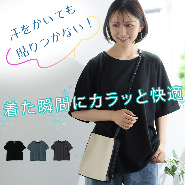 カットソー LL 3L 4L 半袖 夏 夏物 夏服 夏用 ぽっちゃり ゆったり プラスサイズ 吸水速乾 UV かわいい おしゃれ 二の腕カバー カラっと乾いてサラっと着られる! 裏メッシュ ラグラン プルオーバー
