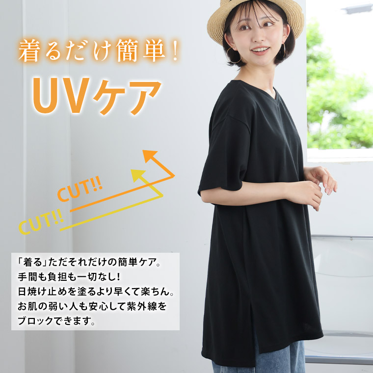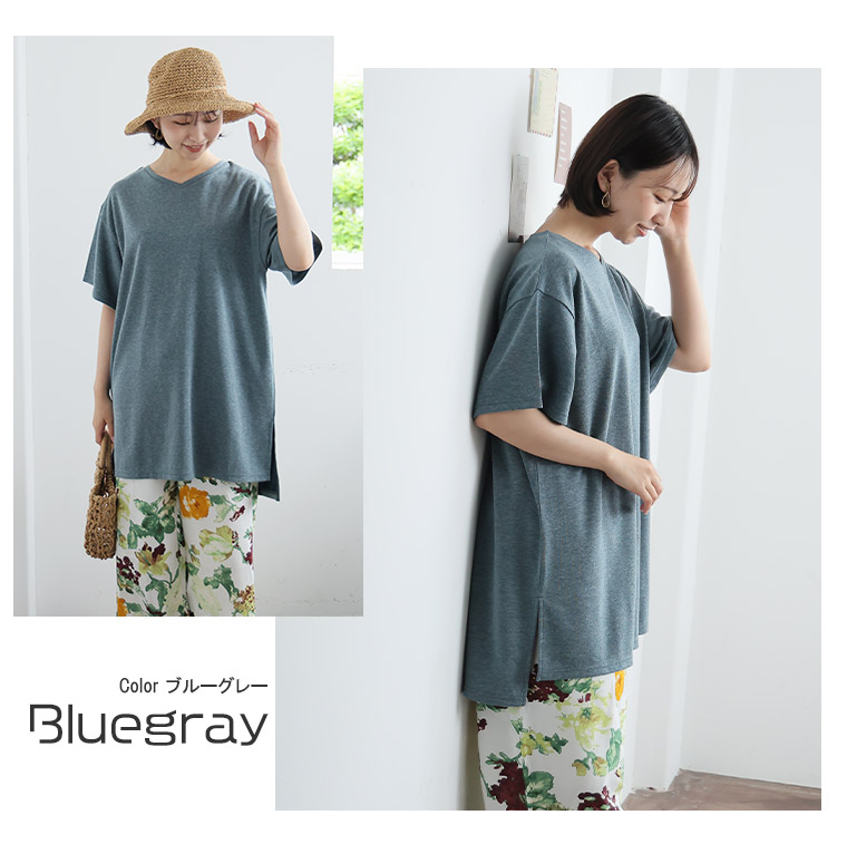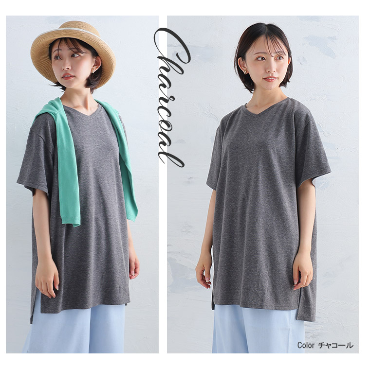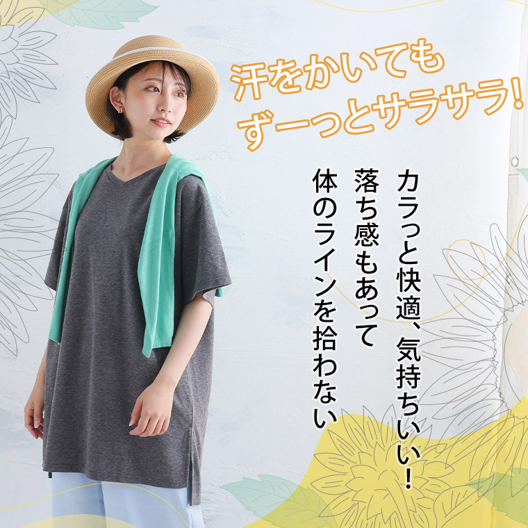 6. 大きいサイズ カラッと乾いてサラっと着られる 裏メッシュ 浅Vネック チュニック