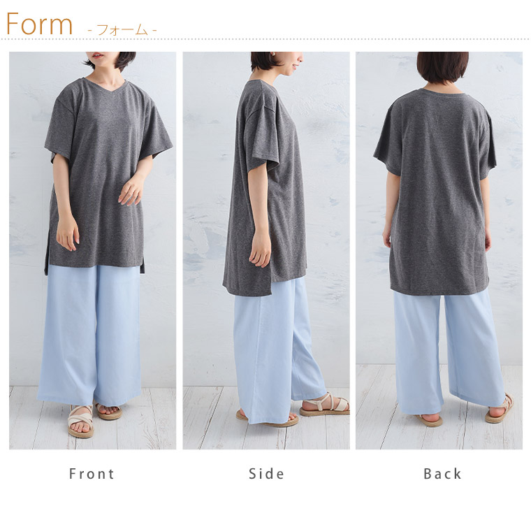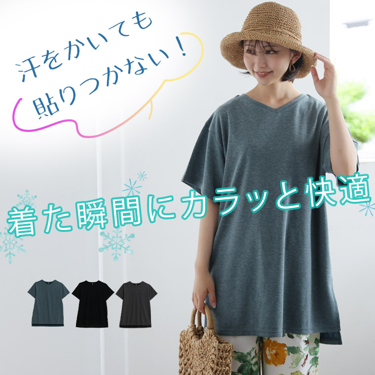 3. 大きいサイズ カラッと乾いてサラっと着られる 裏メッシュ 浅Vネック チュニック